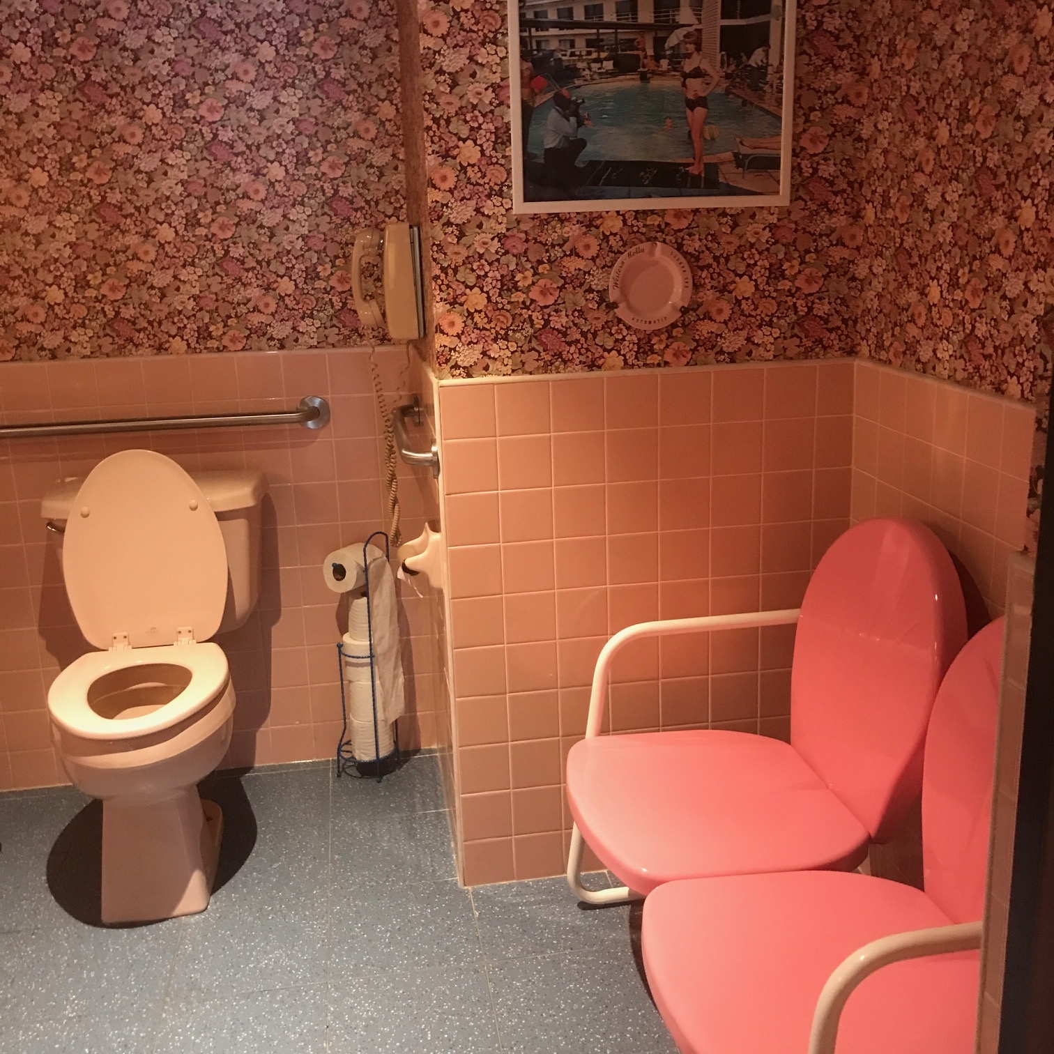You must do a drive by in the pink 50’s style bathroom.
