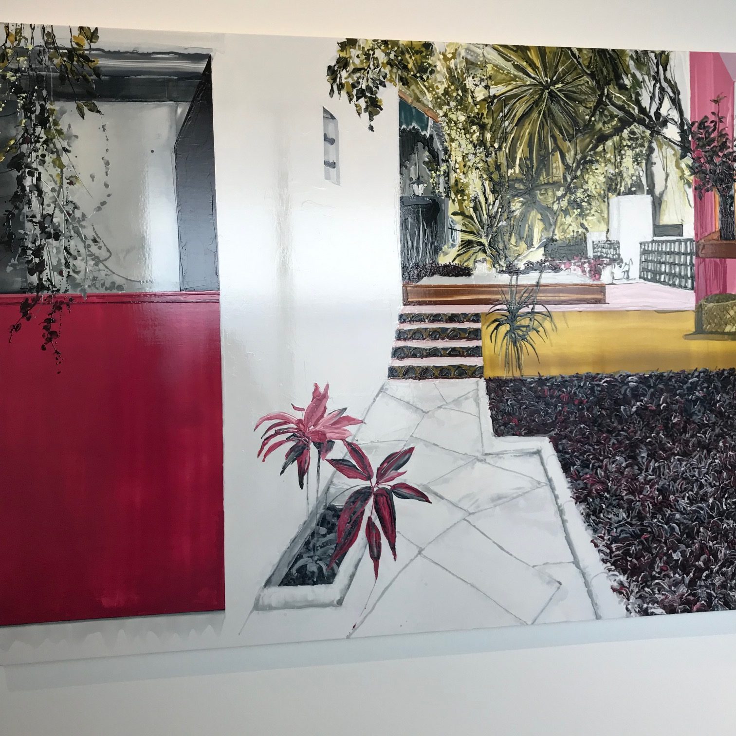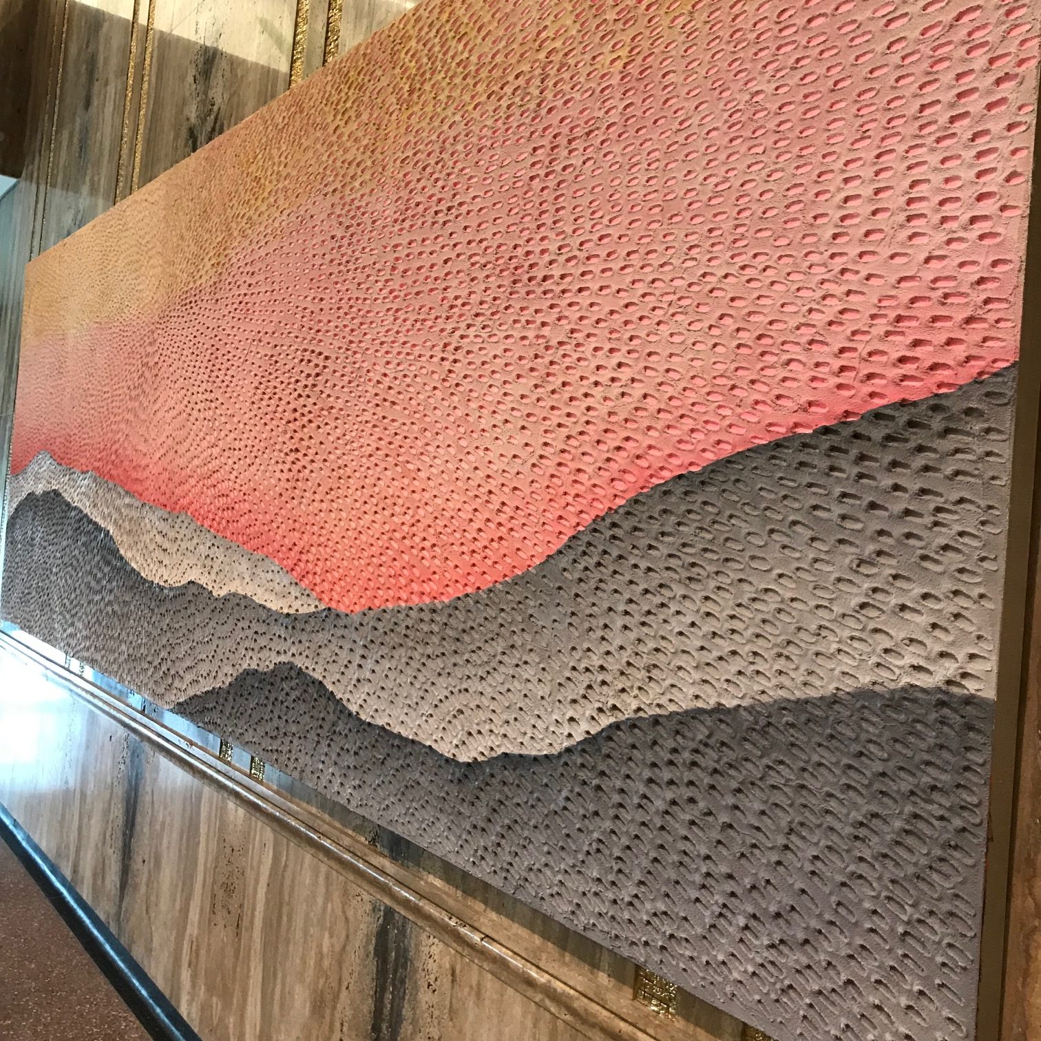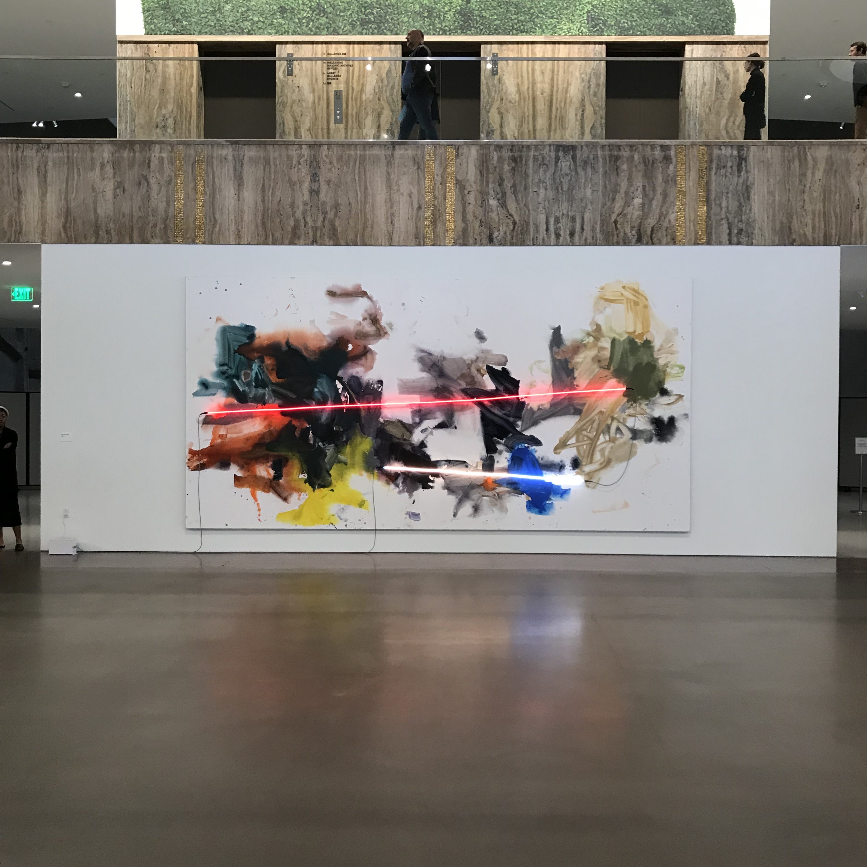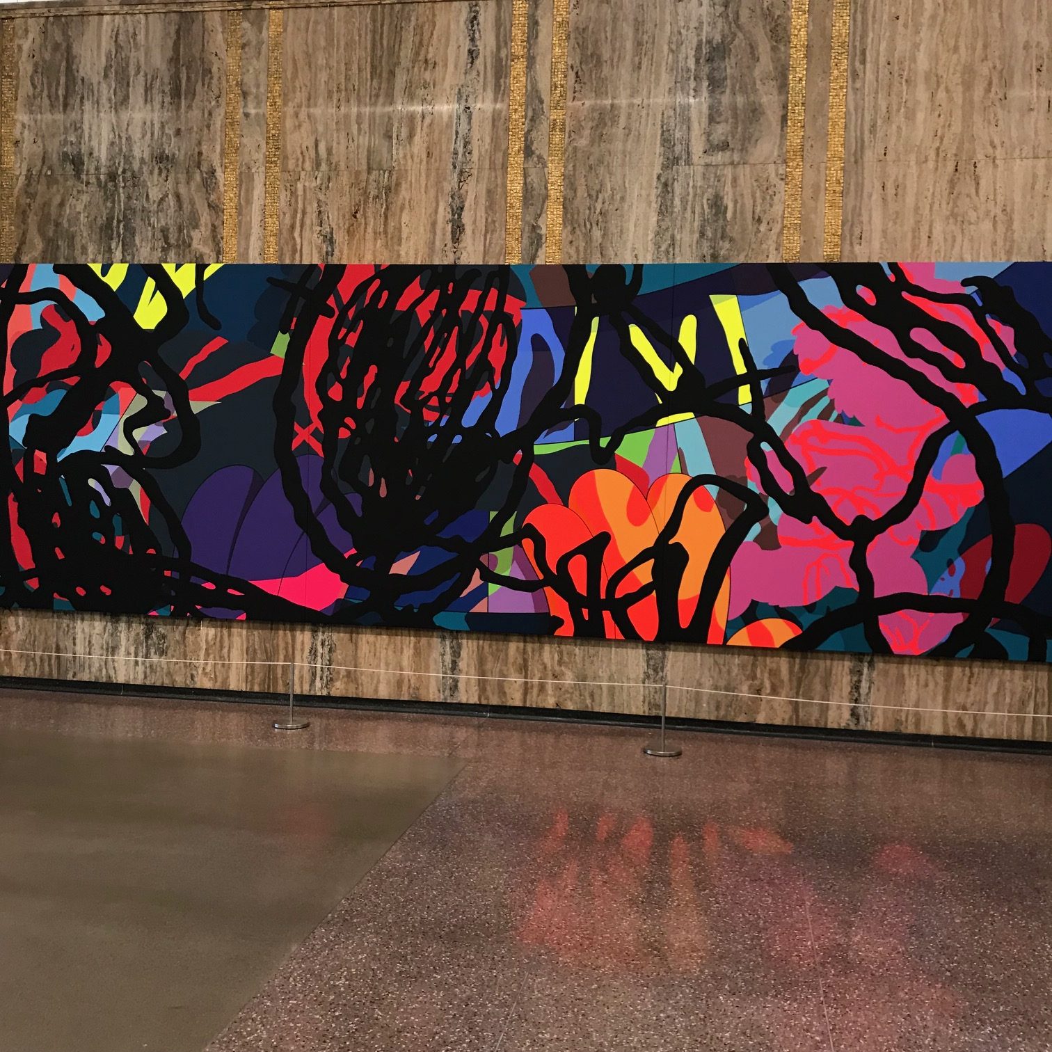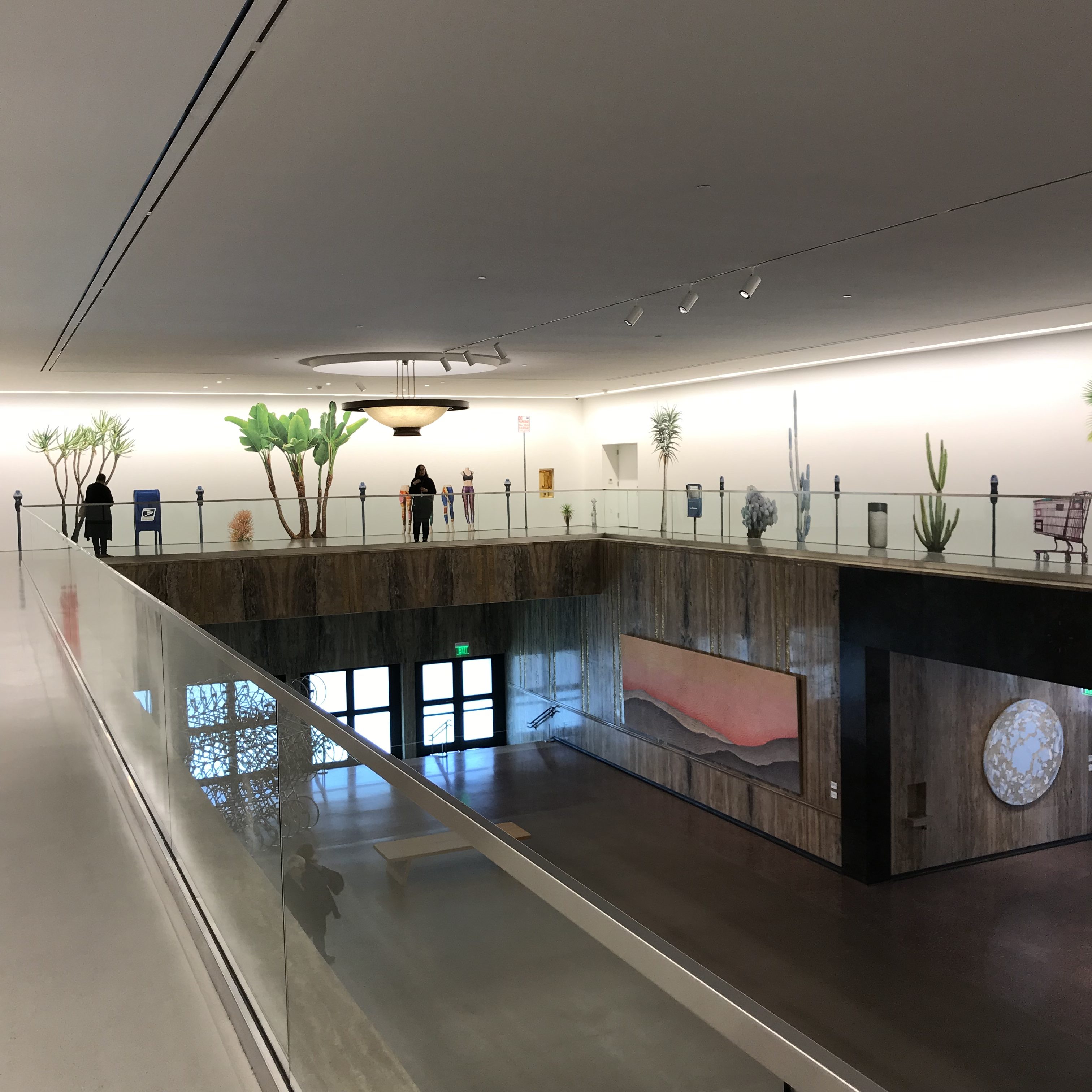 The mezzanine has a mural painting representing Los Angeles by Alex Israel (2008). With Valet Parking, Israel effectively blends and blurs the line between homage and parody, cynicism and hope.