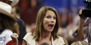 U.S. Rep Michele Bachman, R-Minn., talks to delegates on the floor at the Republican National Convention in Tampa, Fla., on Tuesday, Aug. 28, 2012. (AP Photo/Jae C. Hong)