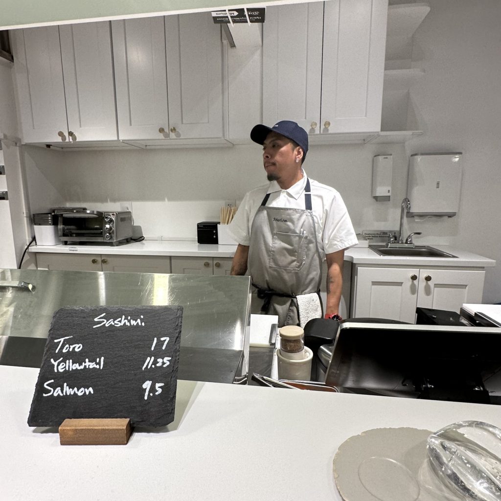 You can order handroll sets (4 for $22, 5 for $27) or select your own individual combinations, featuring sweet uni, salmon roe, caviar and fatty tuna and Waygu. Vegan rolls are an additional option.