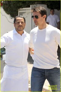 Malibu, CA – Tom Cruise is all smiles as he leaves a restaurant in Malibu with his lawyer. A couple of weeks ago Tom and Katie Holmes reached a settlement on their divorce with katie getting primary custody rights.