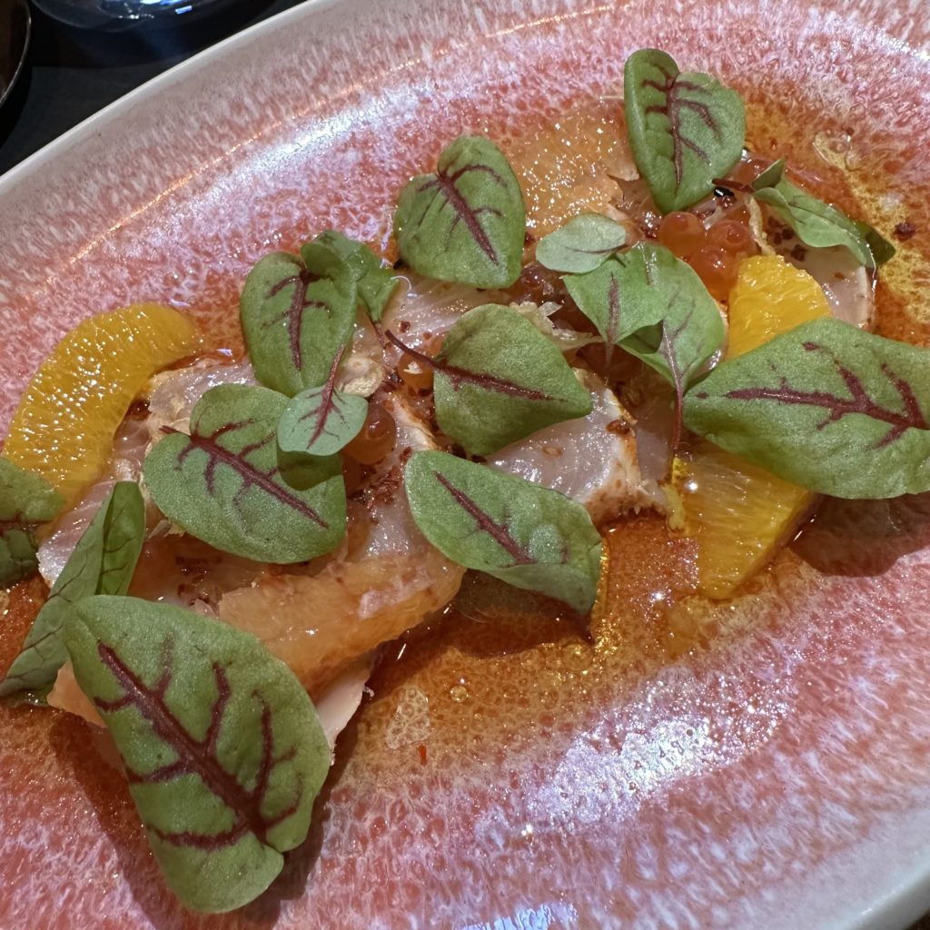 The Yellowtail sashimi was served with ikura, citrus and sorrel. Another fresh dish with perfect enhancements ($31).