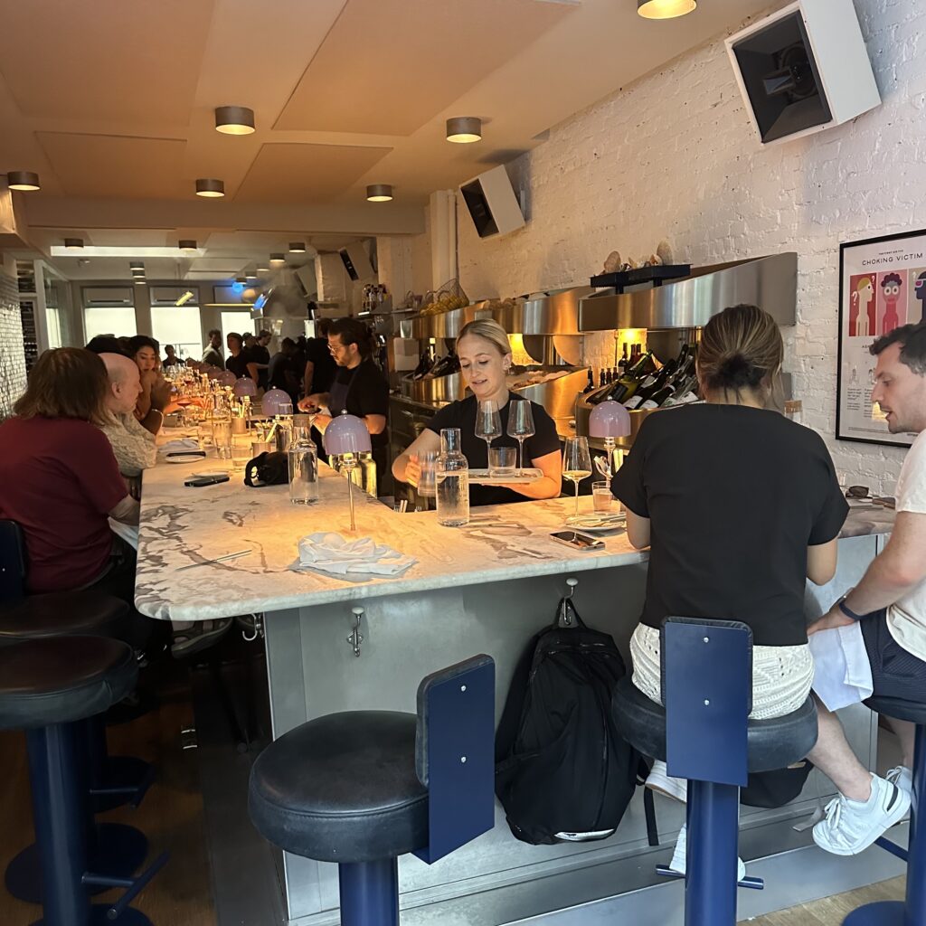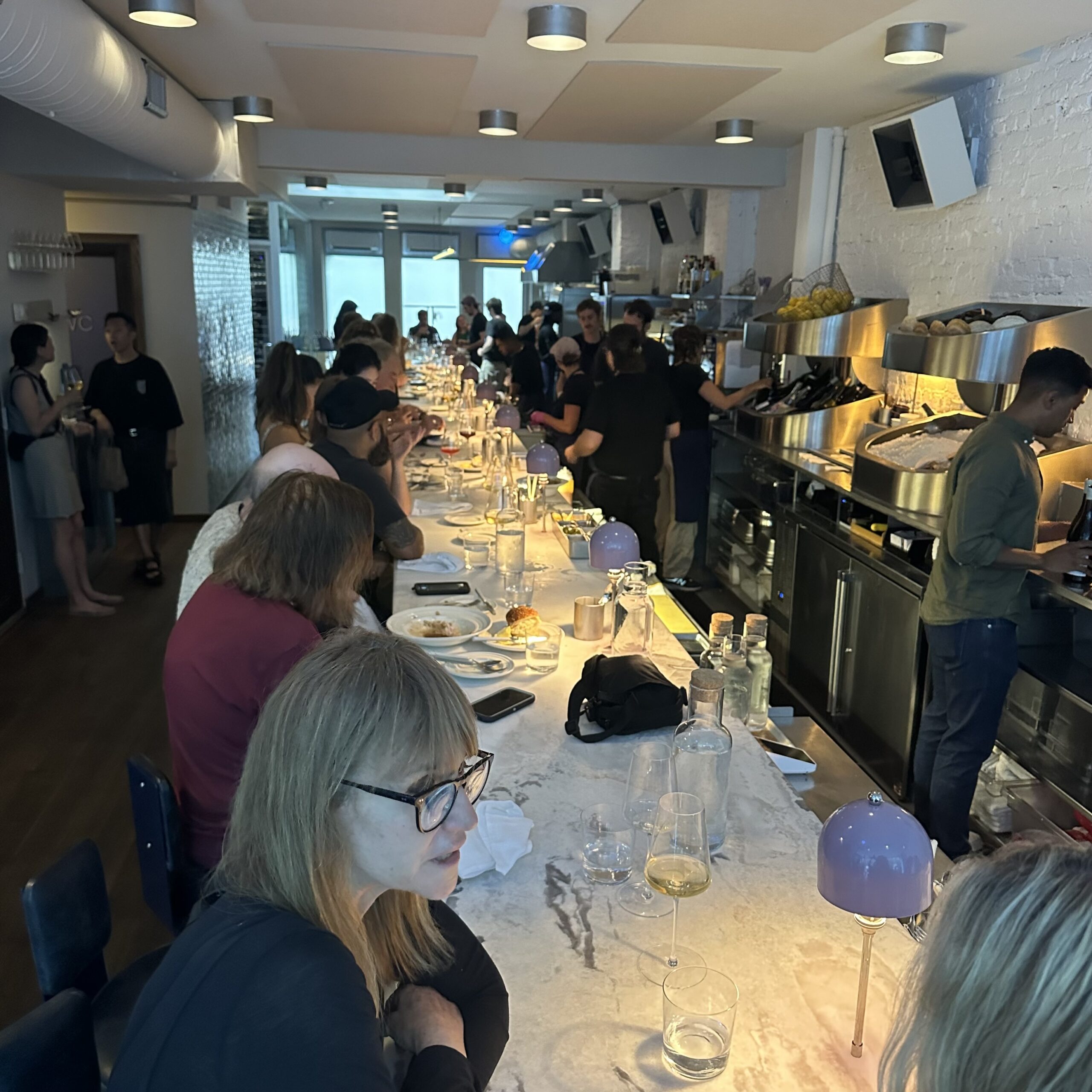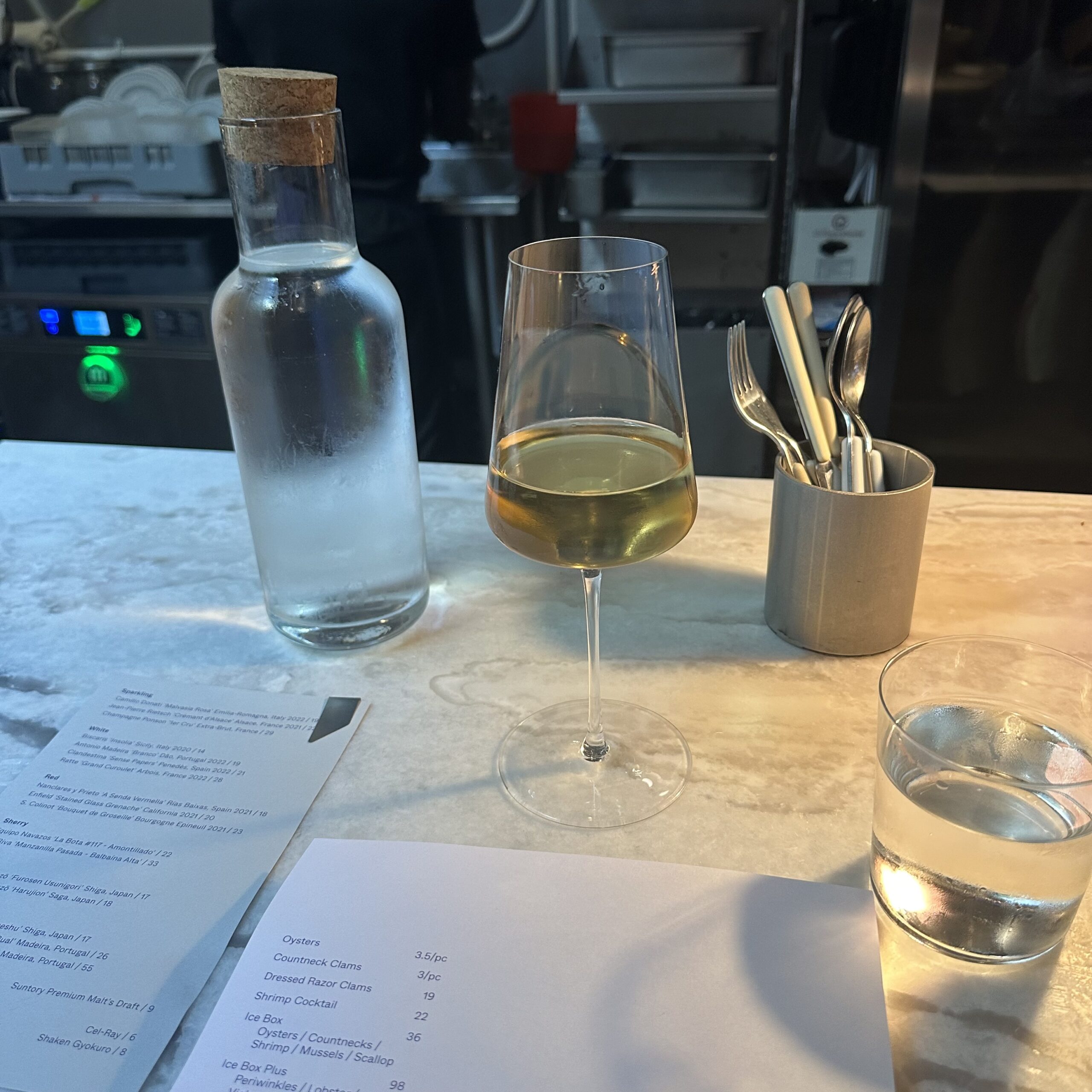 While awaiting our spot at the long marble counter at least 10 locals dropped by without a reservation and were told it was a 2 hour wait. Everyone was cool with it and I assumed headed home to await the call that their seafood fantasies would soon be fulfilled.