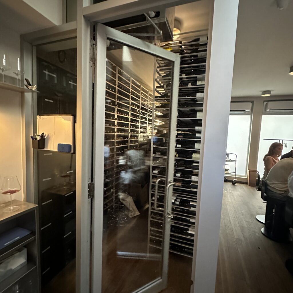 Wines from around the world are featured. There is a 3200 capacity bottle walk in refrigerator at the back of the restaurant.