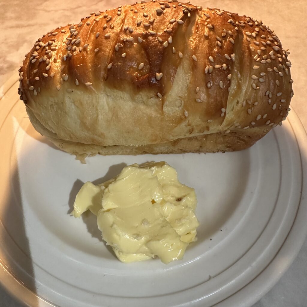 The homemade sesame seed Brioche arrived hot out of the oven served with a dollop of salted Perigold softened butter ($8).