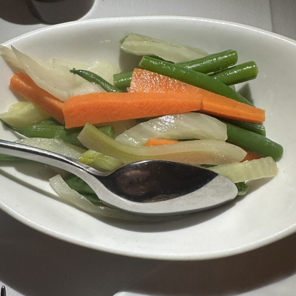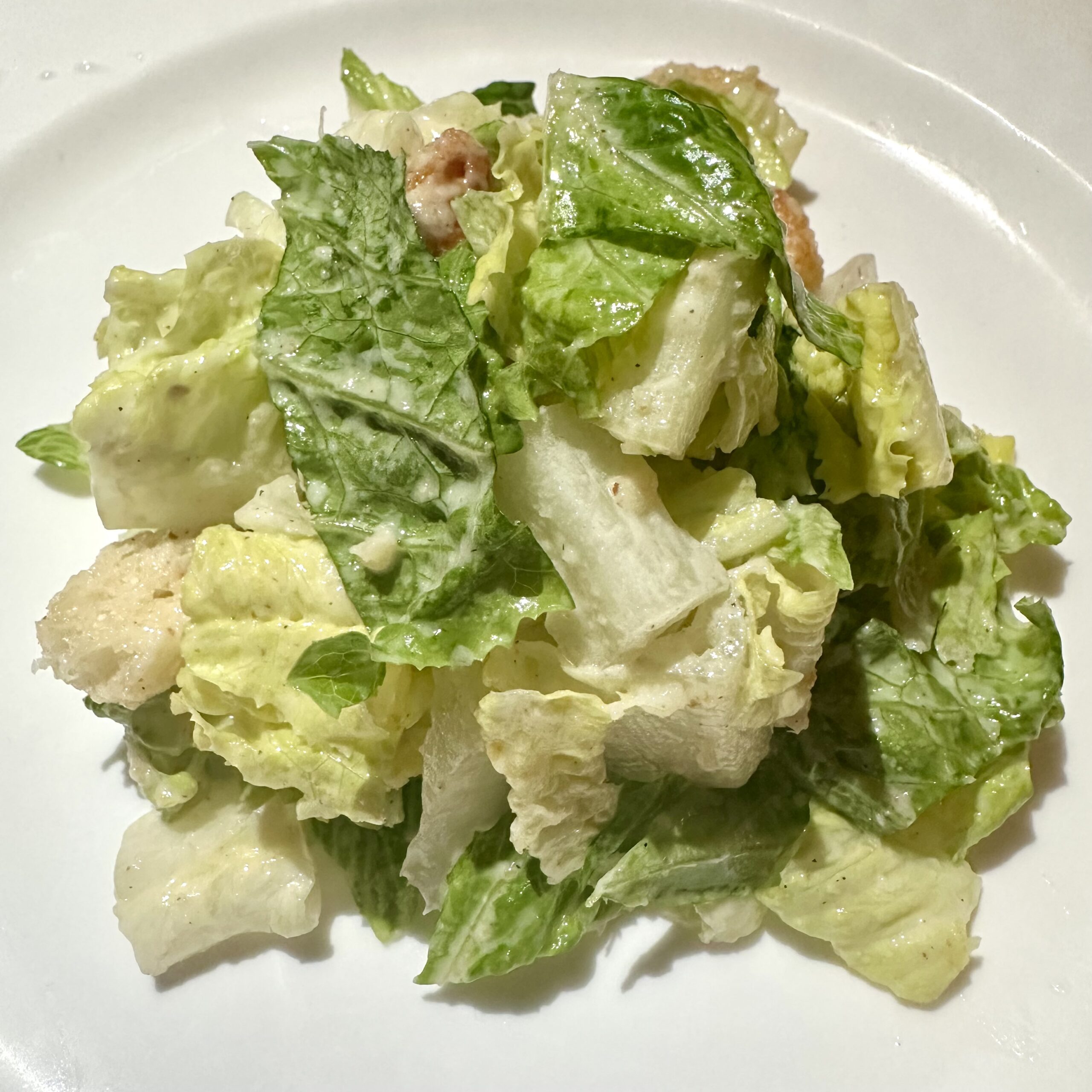 Our first course was a classic Caesar which we shared. It was perfection…chilled which is mandatory, but rarely done these days, grated parmesan, scrumptious croutons, which I never eat, but these were irresistible ($17).