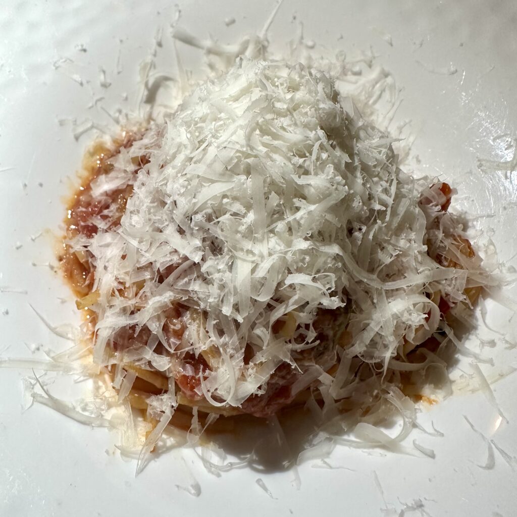 We ordered a no frills, delectable 1/2 portion Capellini with fresh homemade tomato sauce. The kitchen split it and it was a lovely portion size ($14).