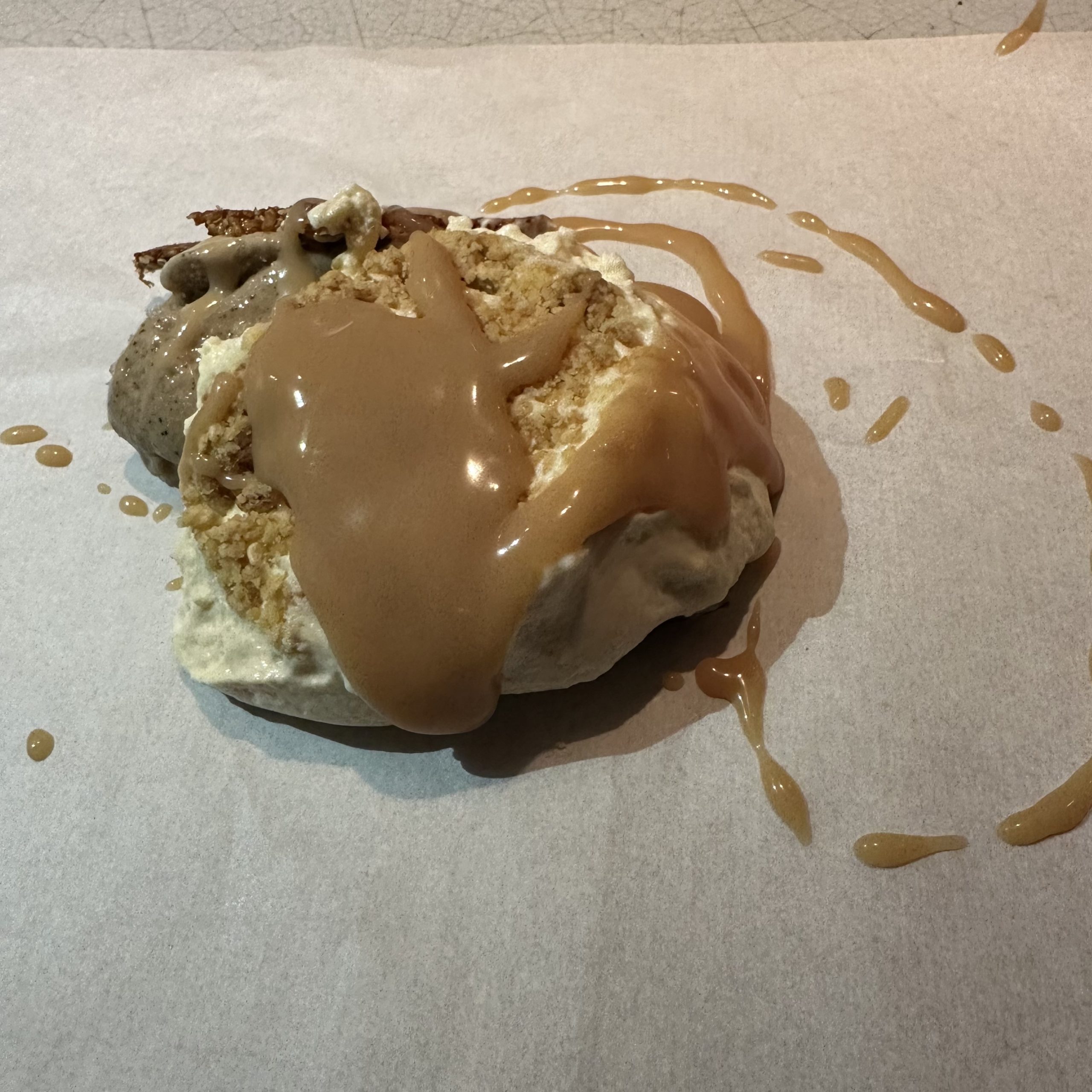 The Crash Halva dessert was all histrionics and absolutely amazing with ice cream, caramel sauce, chocolate layering and halva which is a traditional Middle Eastern fudge-like confection made with tahini, sugar, spices and nuts. The semisweet, nutty flavor and crumbly, fluffy texture is what makes it a uniquely delicious treat.
