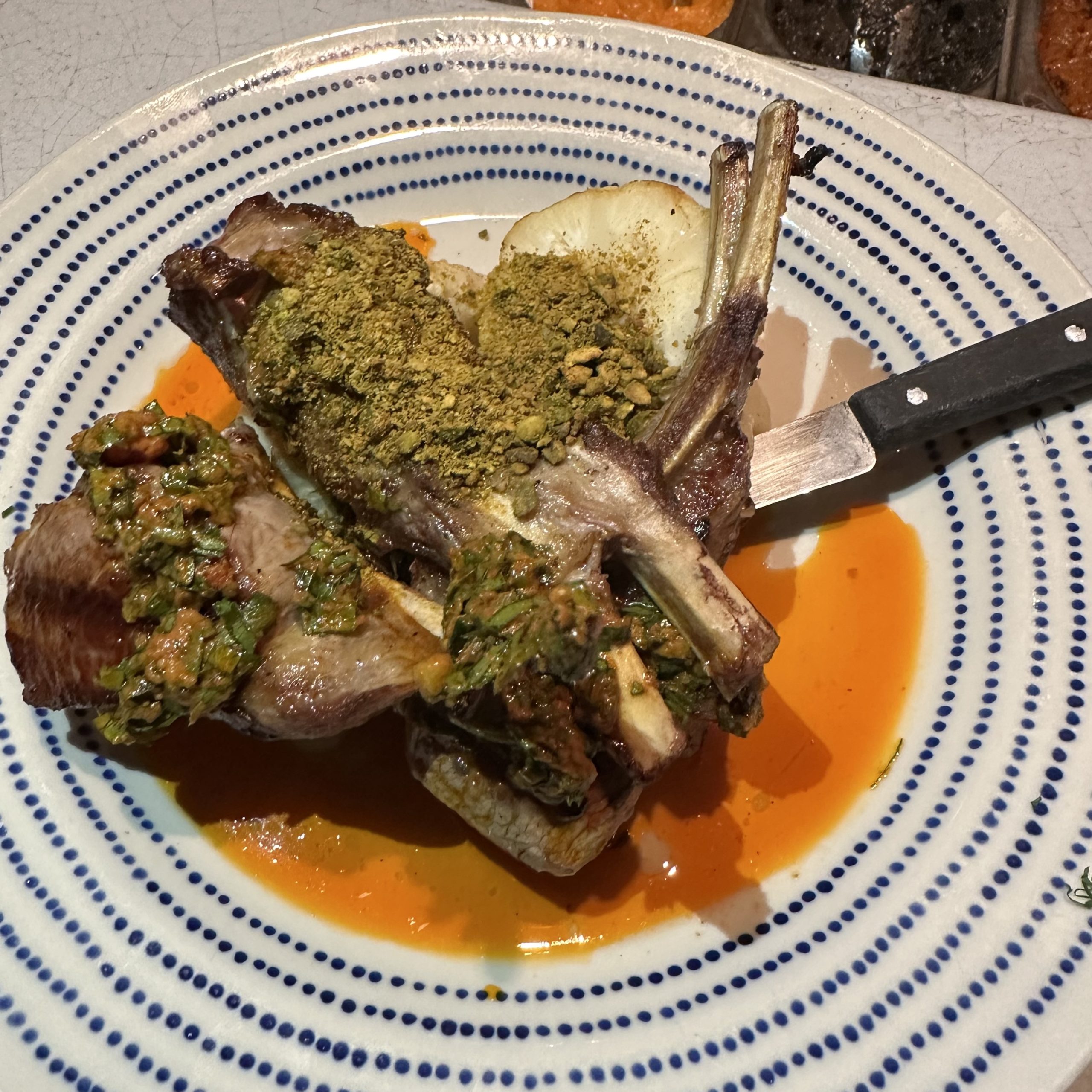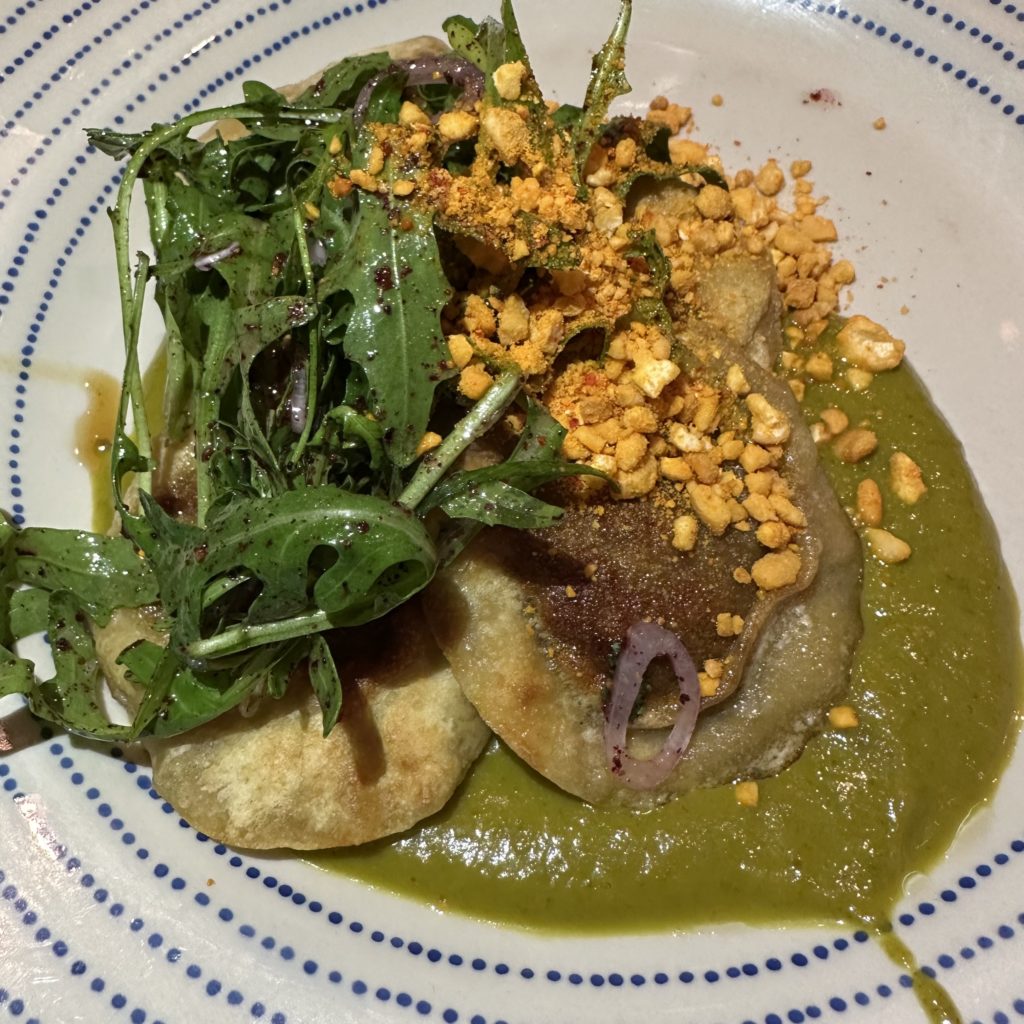 The Ozan 2.0 are crispy appealing raviolis with fennel siske, hamusta sauce (hamusta means sour in Kurdish) and spicy cashews ($24).