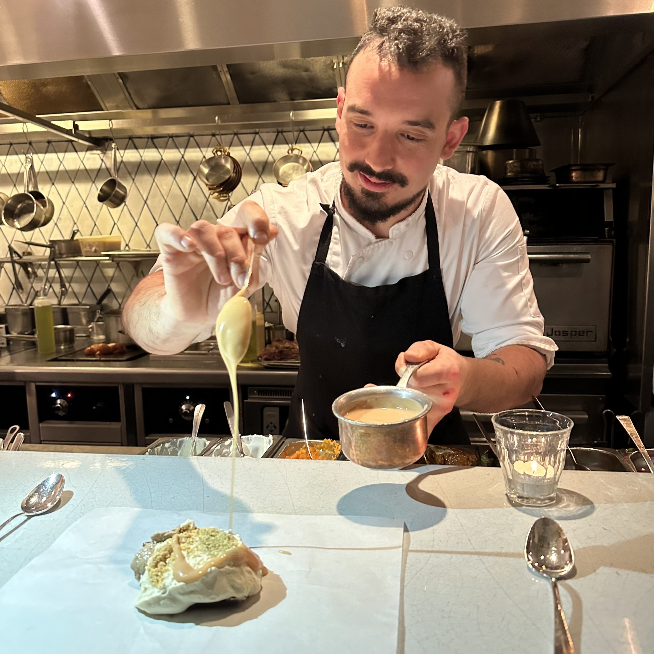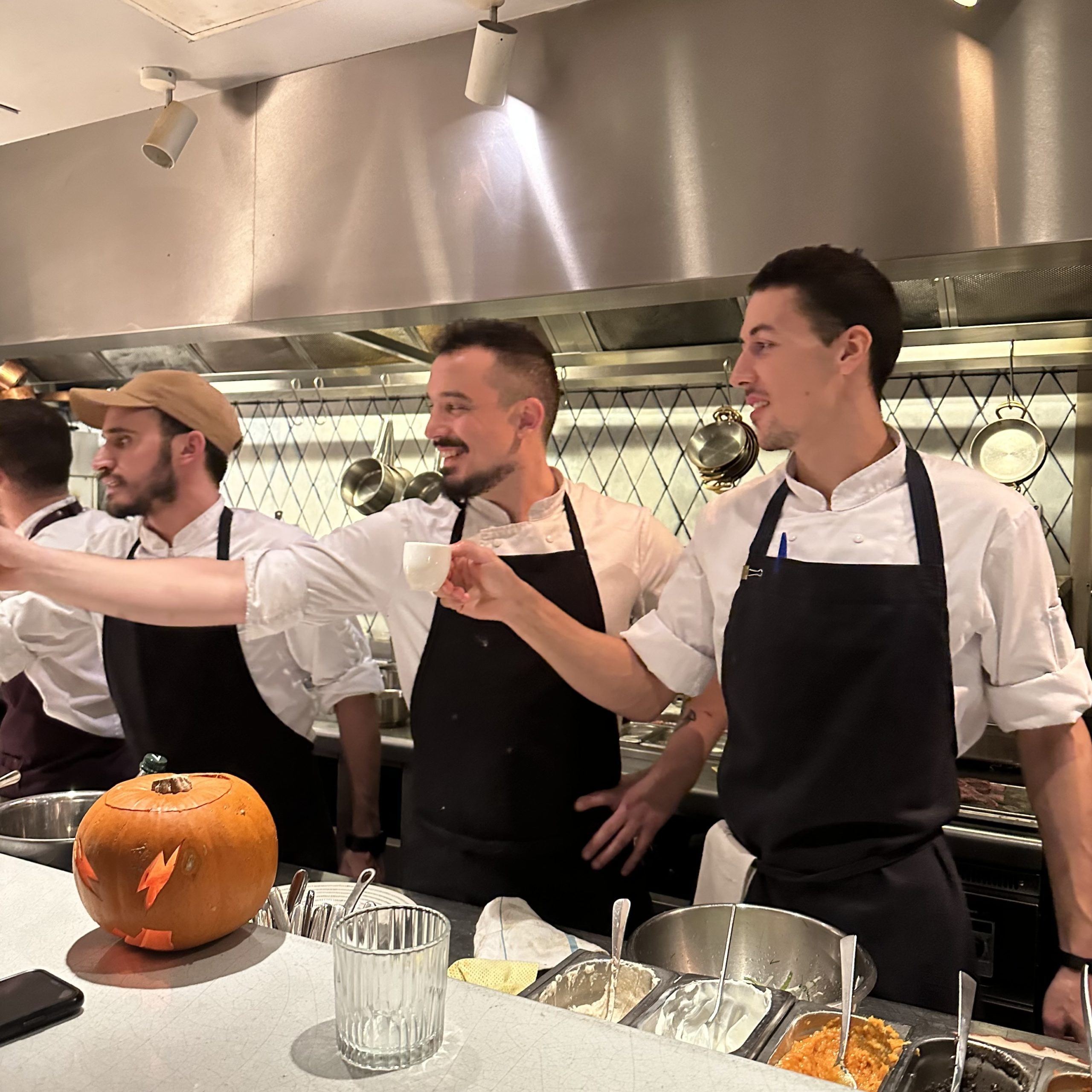 We requested the bar at Balagan and sat with Chef Elior Ben Arosh and sous chef Constantinos.