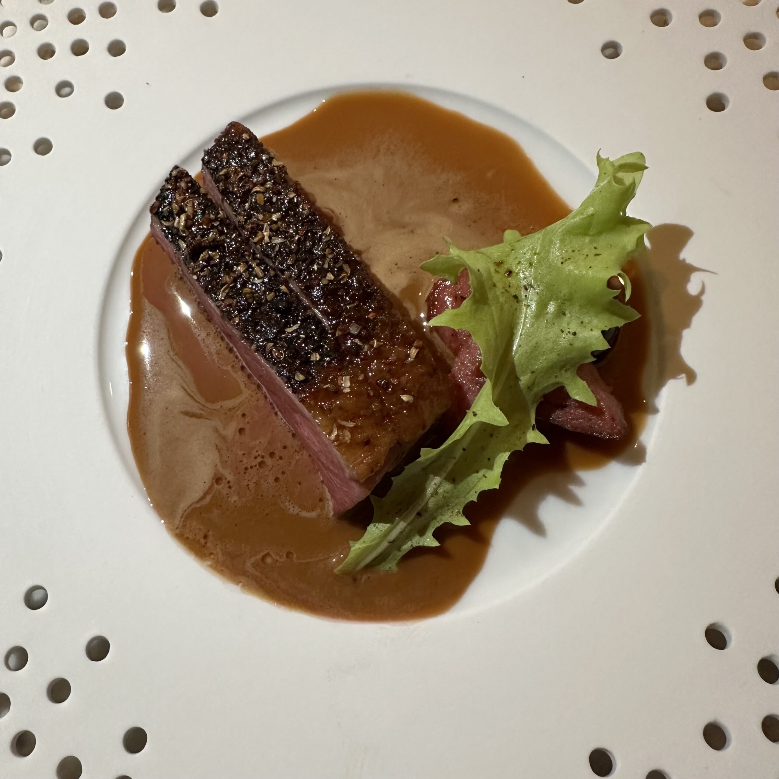 Next in line was Dried Aged Duck with homemade Five Spice and Duck Bone Jus. I am not a duck fan, but this was tender and flavorful.