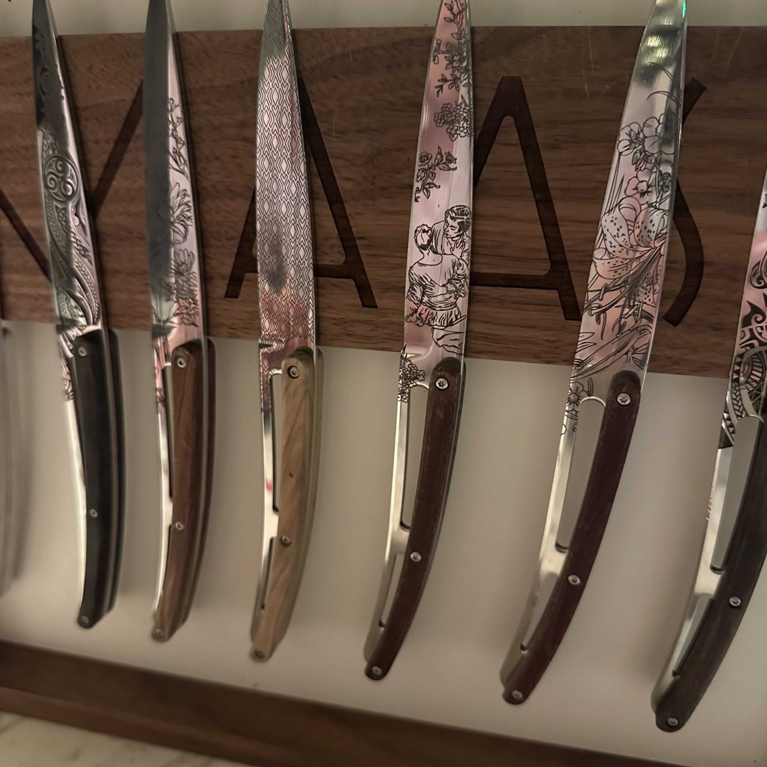 Before sampling the main course, you are shown a set of gorgeous knives inscribed by a famous French tattoo artist. You make your personal selection…the first cut is the deepest.