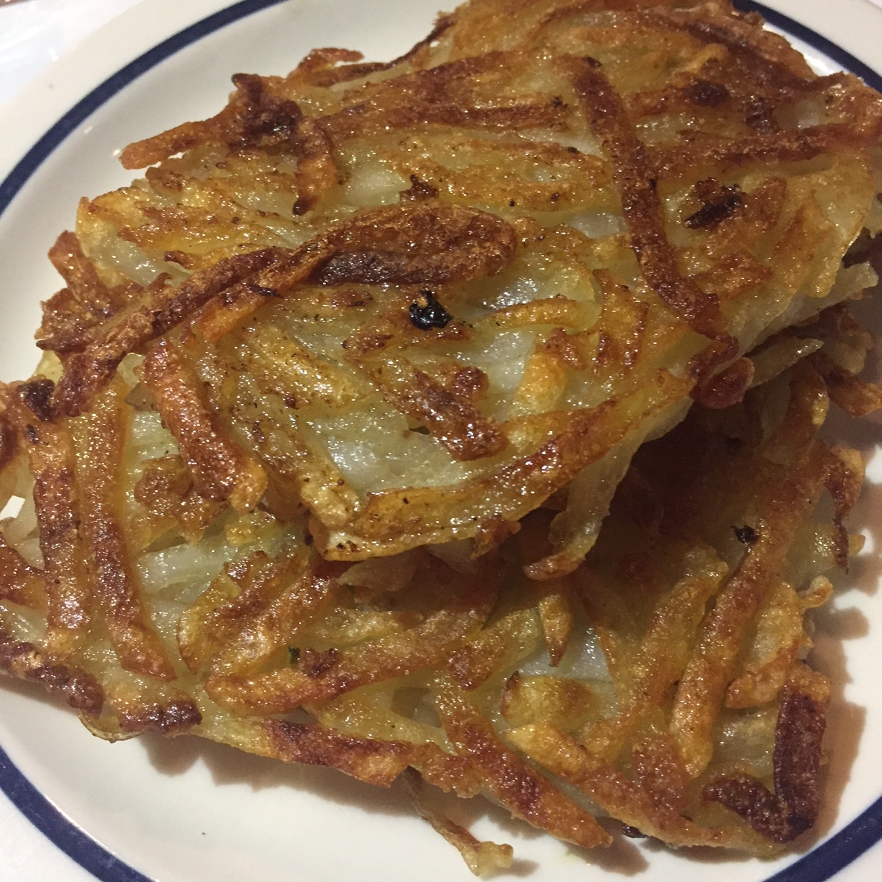 The potato pancakes are authentic, crispy and dense served with chunky applesauce and sour cream ($10).
