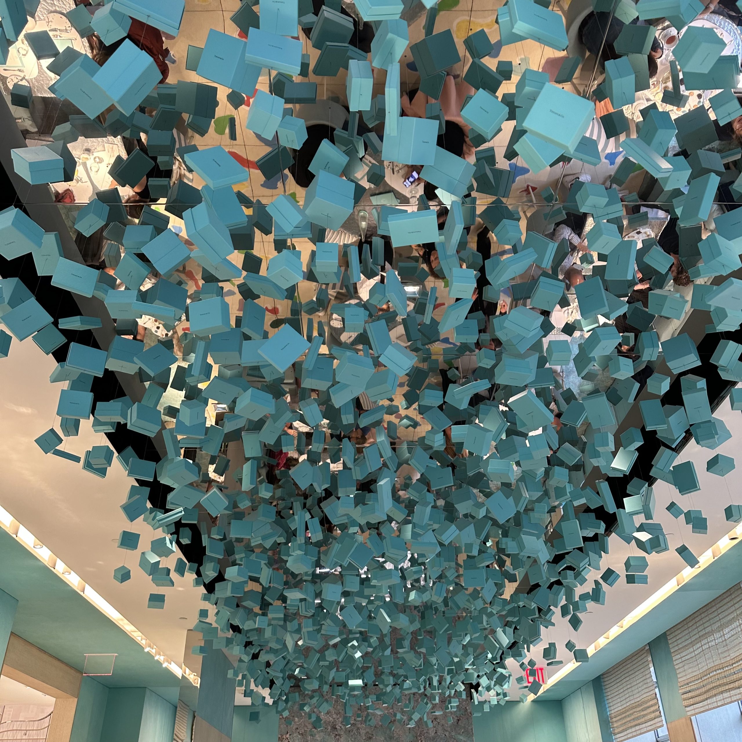 I loved the ceiling encrusted with a constellation of small blue Tiffany boxes which usually hold the always lusted for Tiffany diamond engagement ring.