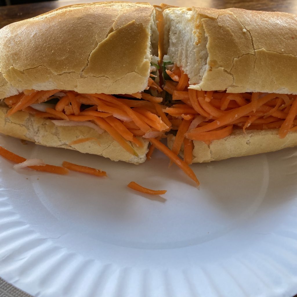 My husband ordered the Seafood Sandwich with an abundance of shrimp, crab with mayo, cucumbers, julienne carrots, daikon radish, cilantro served on a toasted French baguette ($8.25).