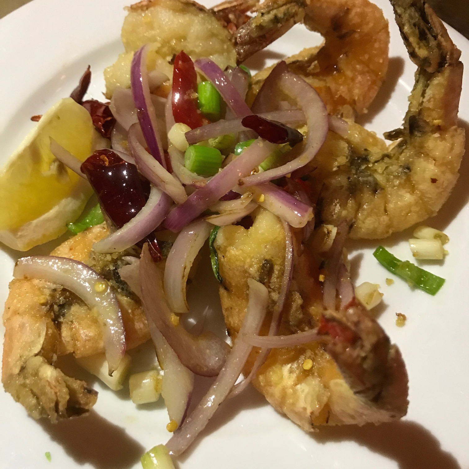 We dined on Salt & Pepper Shrimp, Pea Shoots, Eggplant and Crab Fried Rice.