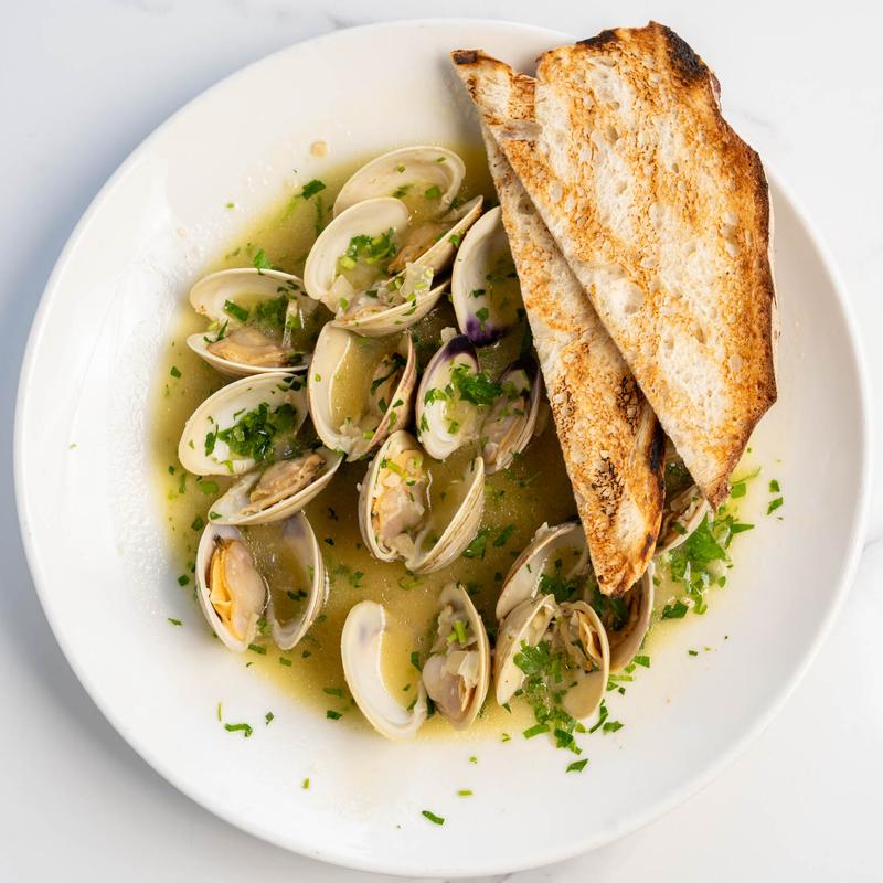 The clams. Not steamers which have the thingy you have to peel off. They were tender and extremely sweet in a delish broth ($24).