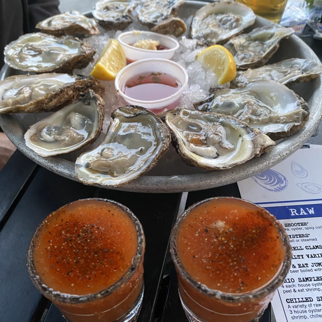 We we’re treated to fried green tomatoes and downed peppery oyster shooters and amazing fresh oysters.
