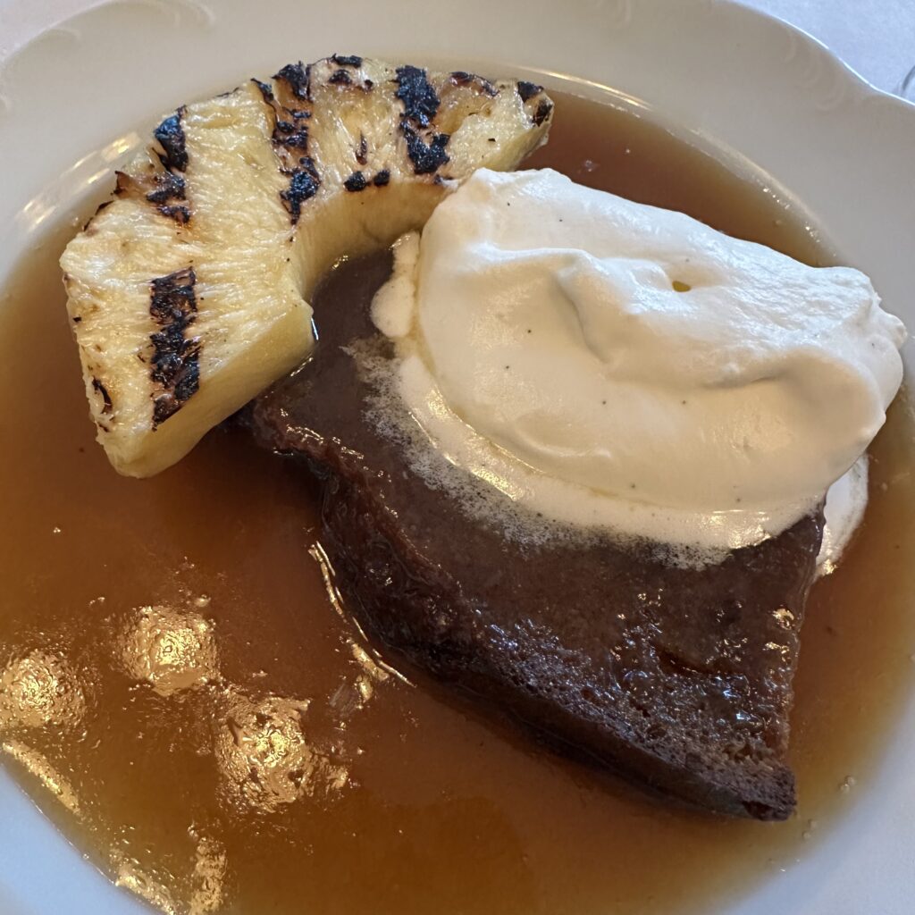 Do not miss out on desserts. Nelson, our gracious, well informed server, highly recommended the Rhum Cake with grilled Pineapple and Butterscotch and he kindly included a soft-serve from the in-house machine. The butterscotch sauce is to die for ($18).