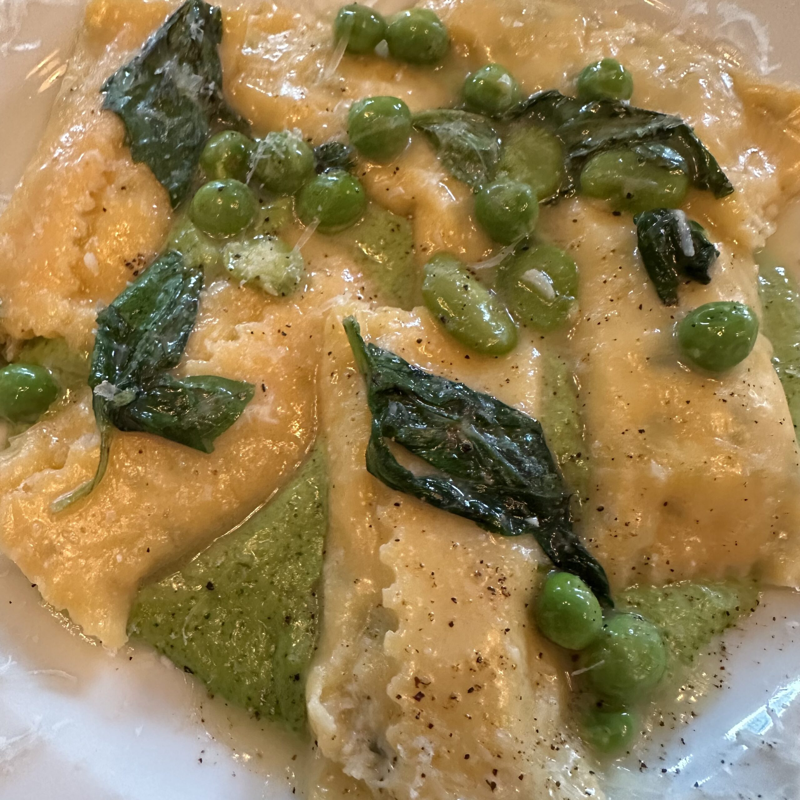The Peekytoe Crab Agnolotti with Spring Peas and Green Garlic was delightful and the peas heavenly ($26).