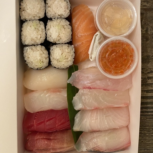 Anyway, back to the present, takeout menu items are still limited so I selected the 10 piece sushi box at $48 per person.