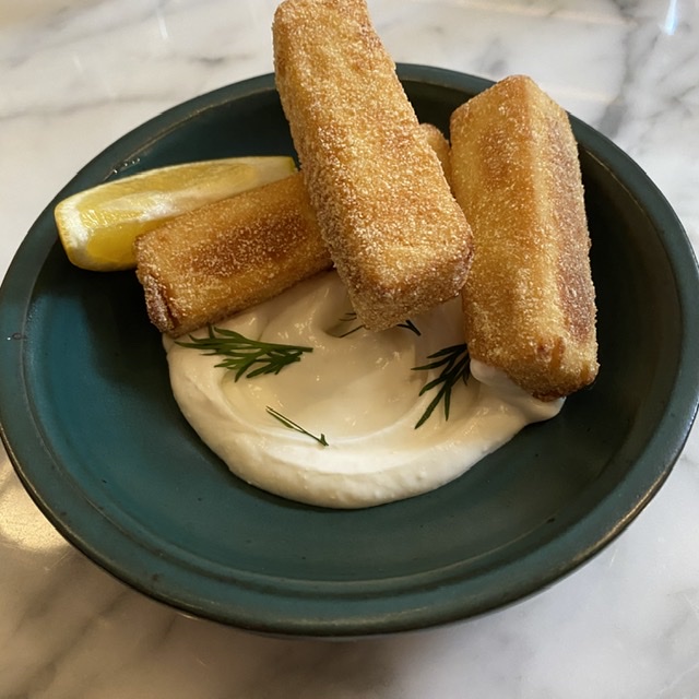 The Panisse Frites were delectable. The light and fluffy chickpea fritters were served with yogurt and feta ($7).