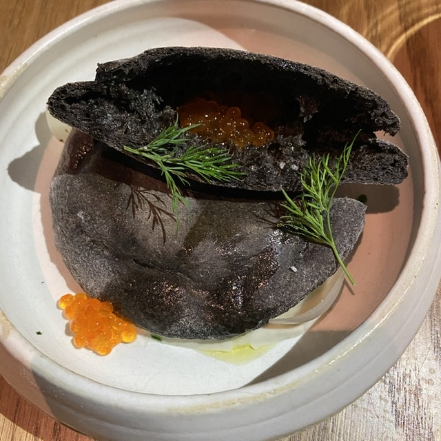 The signature Grilled Squid Ink Pita with trout roe, pickles and smoked oyster aioli was fabulous. I was initially reluctant, but I loved it ($13).
