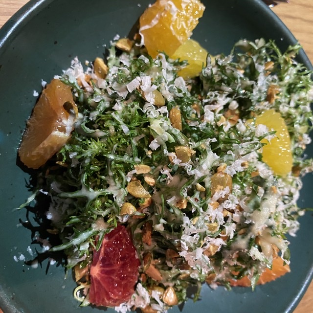 Our opening gambit was a unique and tasty Siberian Kale Salad with winter citrus, achadinha broncha (Portuguese table cheese made with a seasonal blend of pasteurized goats and cows milk) and toasted pepita ($14).