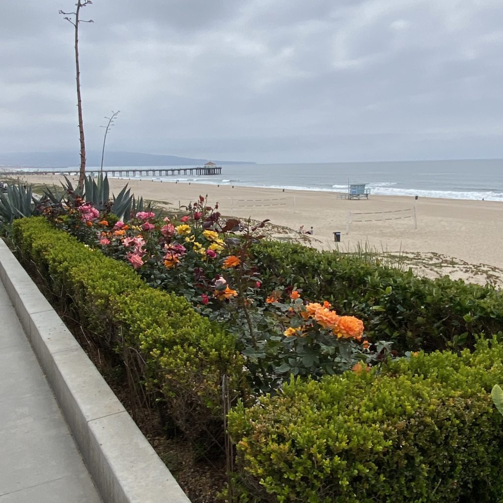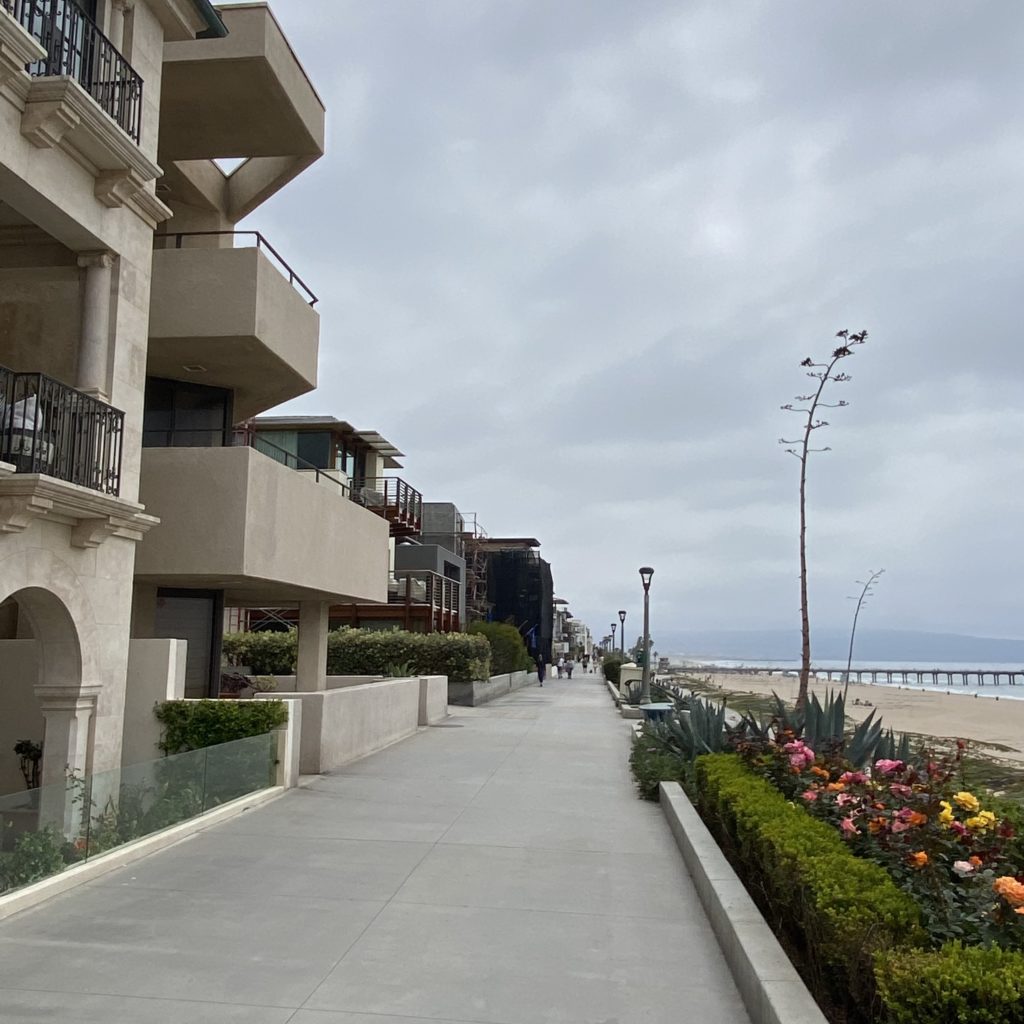 We parked 2 miles away and walked on the Manhattan Beach boardwalk that runs parallel to the wide beautiful beach, taking in the numerous mini-mansions that recently replaced the modest California homes.