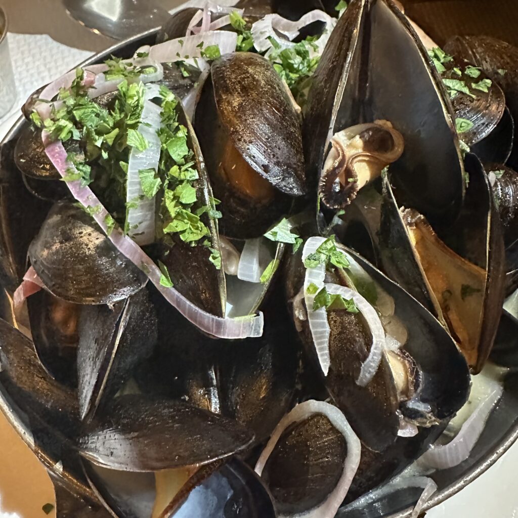 My husband ordered Moules Frites which were very good resting in a rich white wine broth ($37).