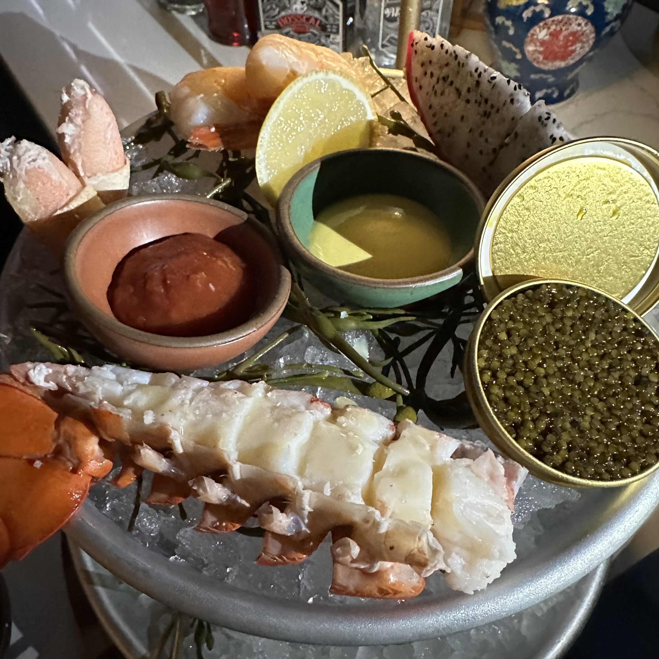 We added the 30g Kaluga Caviar tin which was smoky and decadent. I enjoyed, but would not order again ($48).