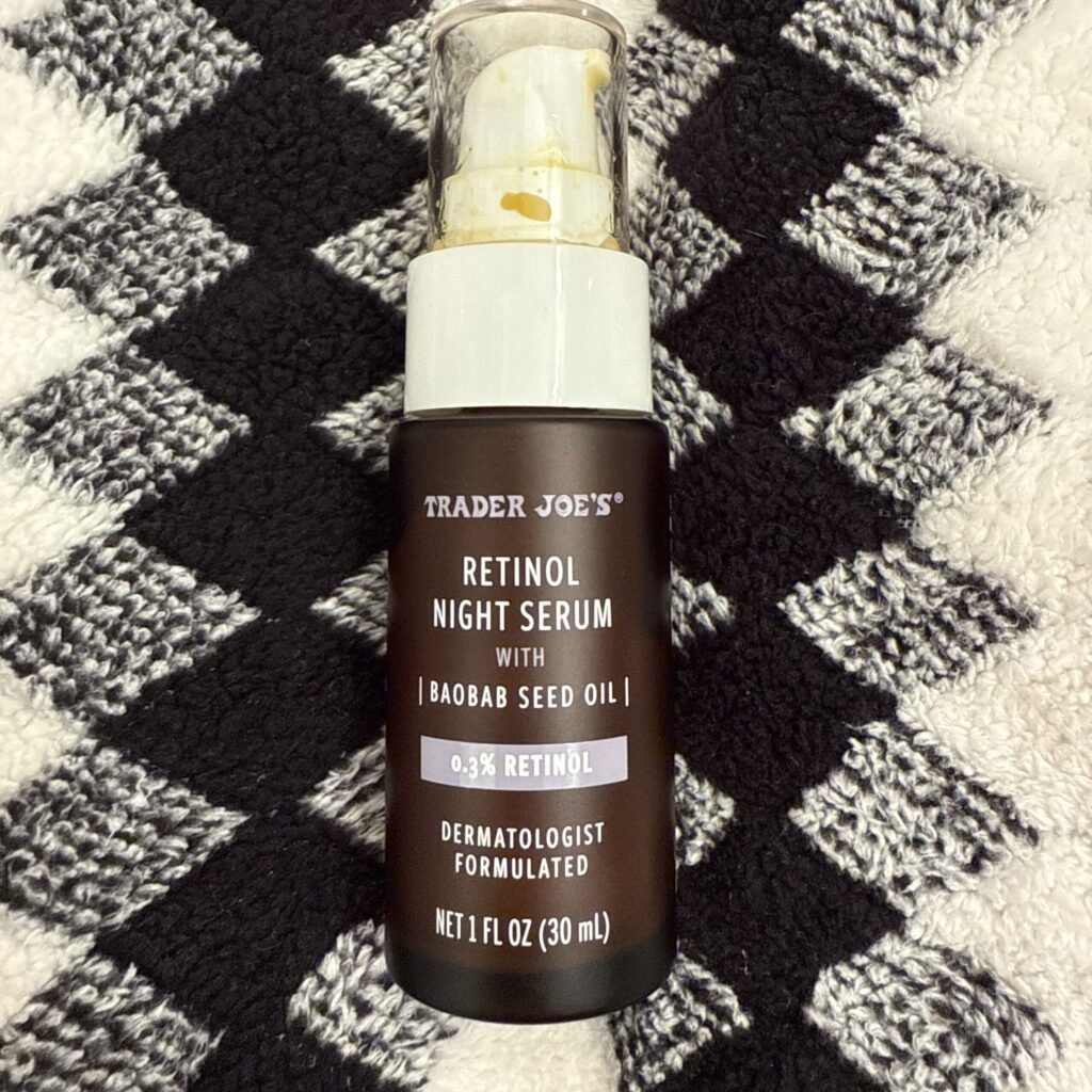 I find Trader Joe’s retinol very effective and I love the price point…$9.99.