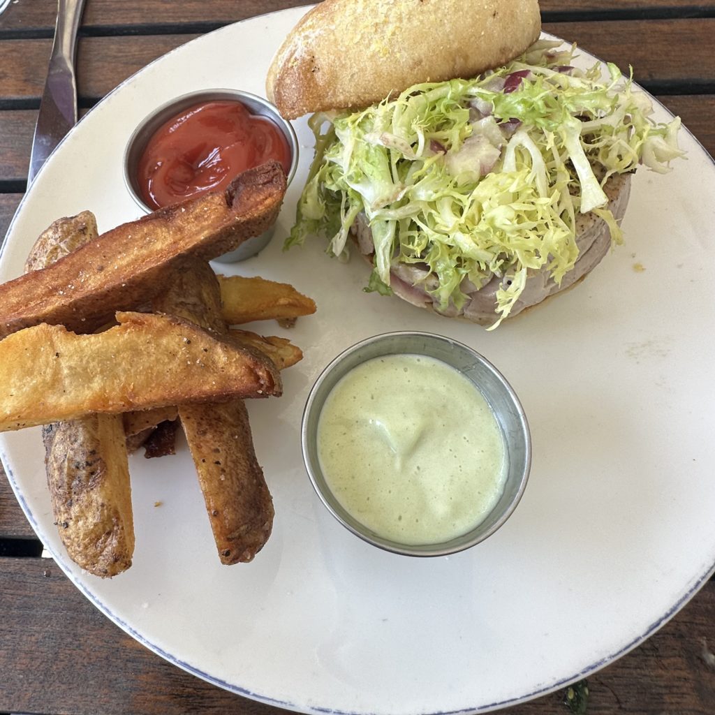 My husband indulged in a giant fresh Big Eye Tuna Burger with wasabi aioli. He said it was perfection and the fries were terrific ($24).
