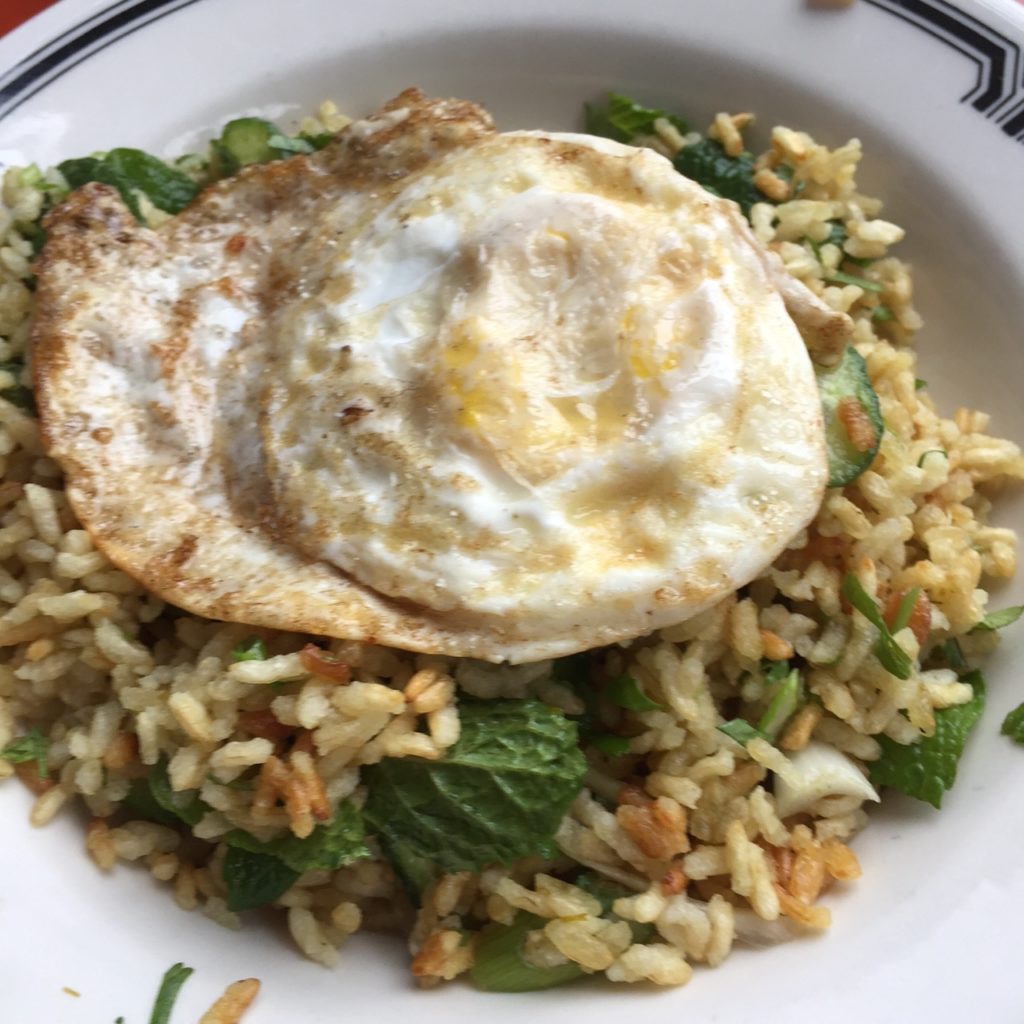 I took all his recommendations to heart, starting with the Crisp Rice Salad consisting of crispy rose brown rice, lemongrass, mint, cilantro, ginger with a fried egg on top ($8.50).
