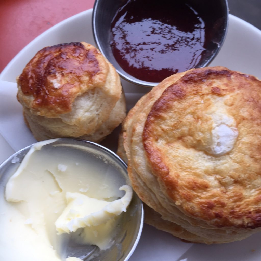 The Only On Sunday Biscuits were out of this world. The sweet butter and the strawberry jam delish.