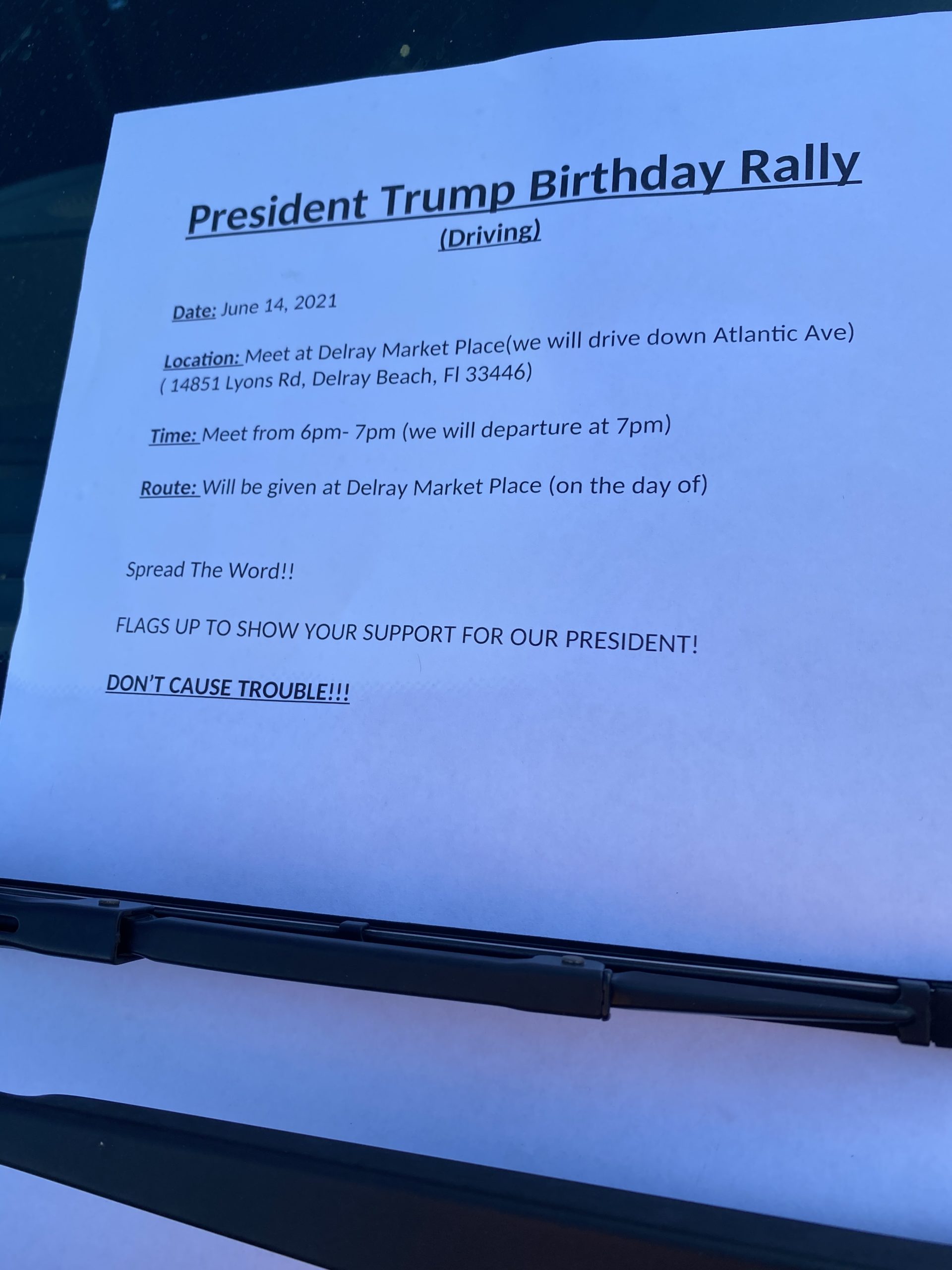 Last night we walked by the beach in Delray and this note was on my windshield when we returned to the car;