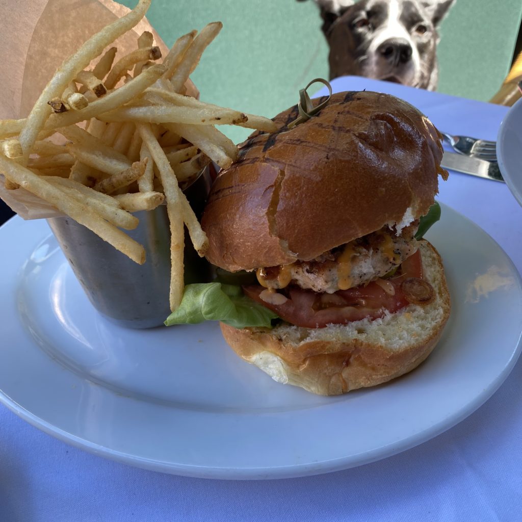 My husband selected the Herb Salmon Burger with fried shallots, pickles and very spicy remoulade…he enjoyed it ($23).