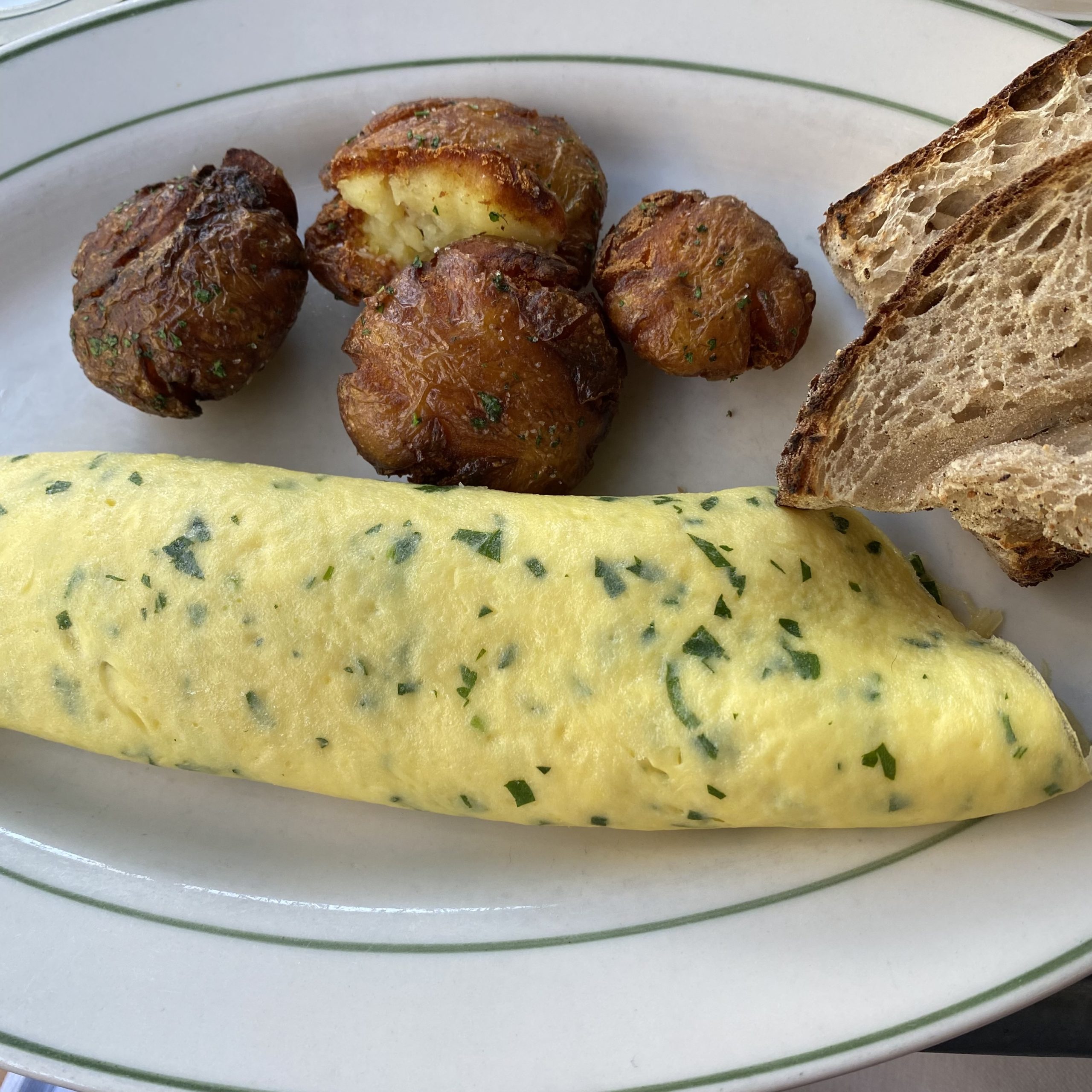 The Guyere Omelette was comparable to any omelette I have had in France ($18).