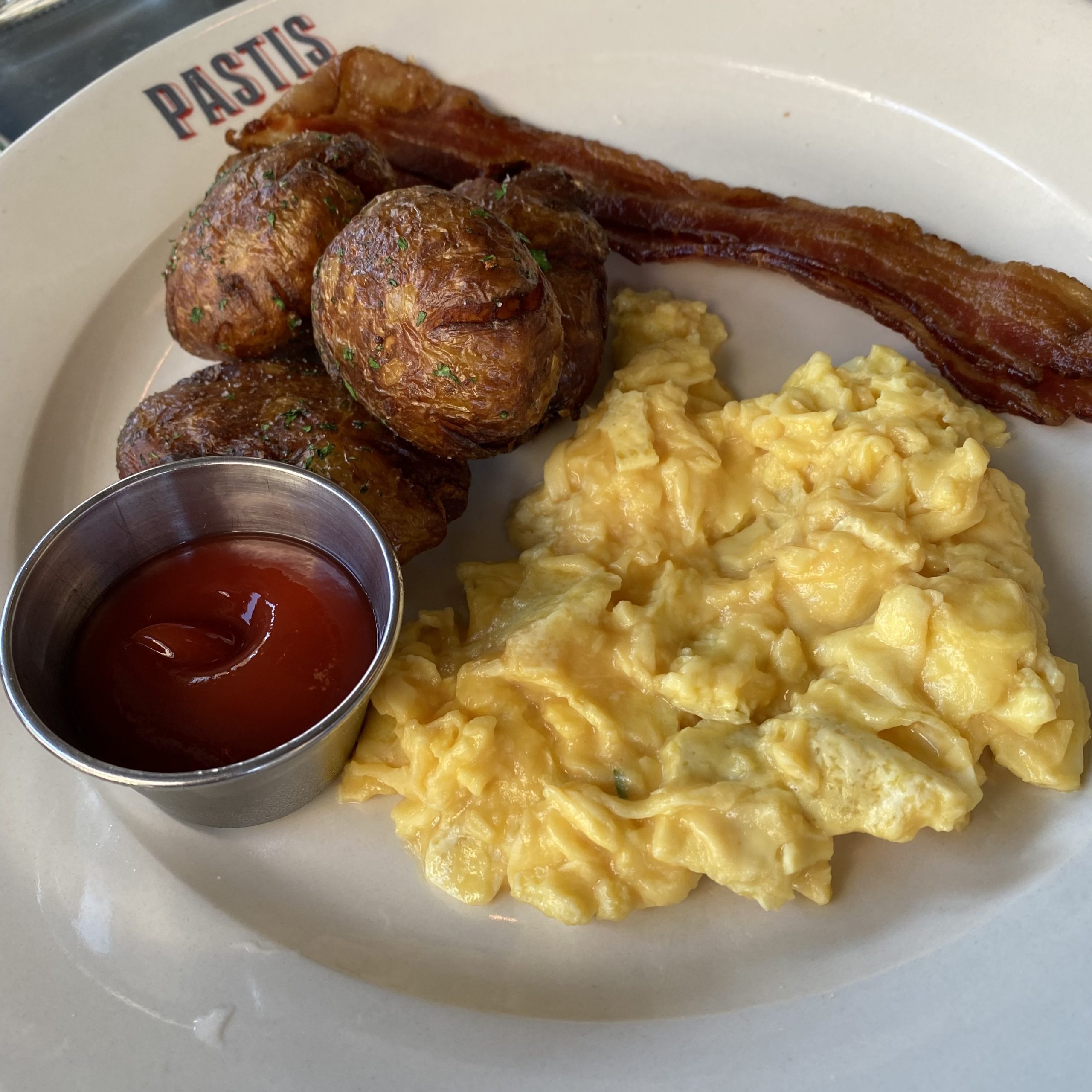 Courtny’s crispy bacon was delicious and accompanied her Eggs Any Style and potatoes ($17).