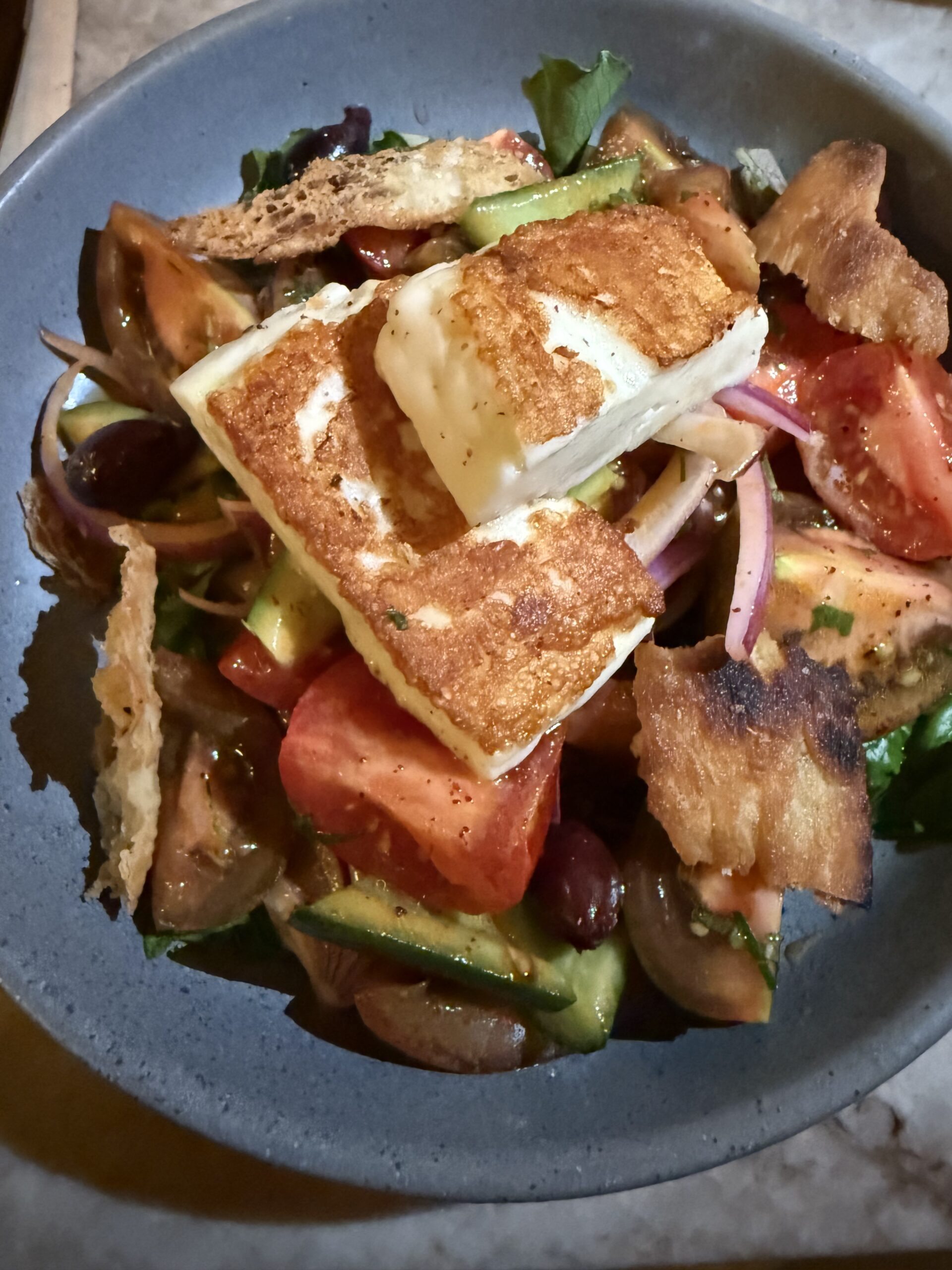 The satisfying Chopped Salad was highlighted by the tasty, well grilled Halloumi ($22).