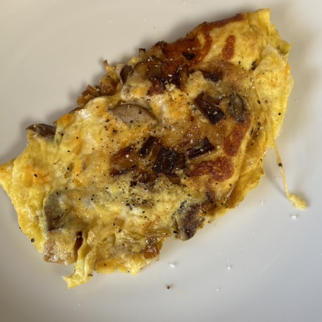 My life partner and I split the omelette and I adorn the top with a dollop of Creme Fraiche or sour cream.