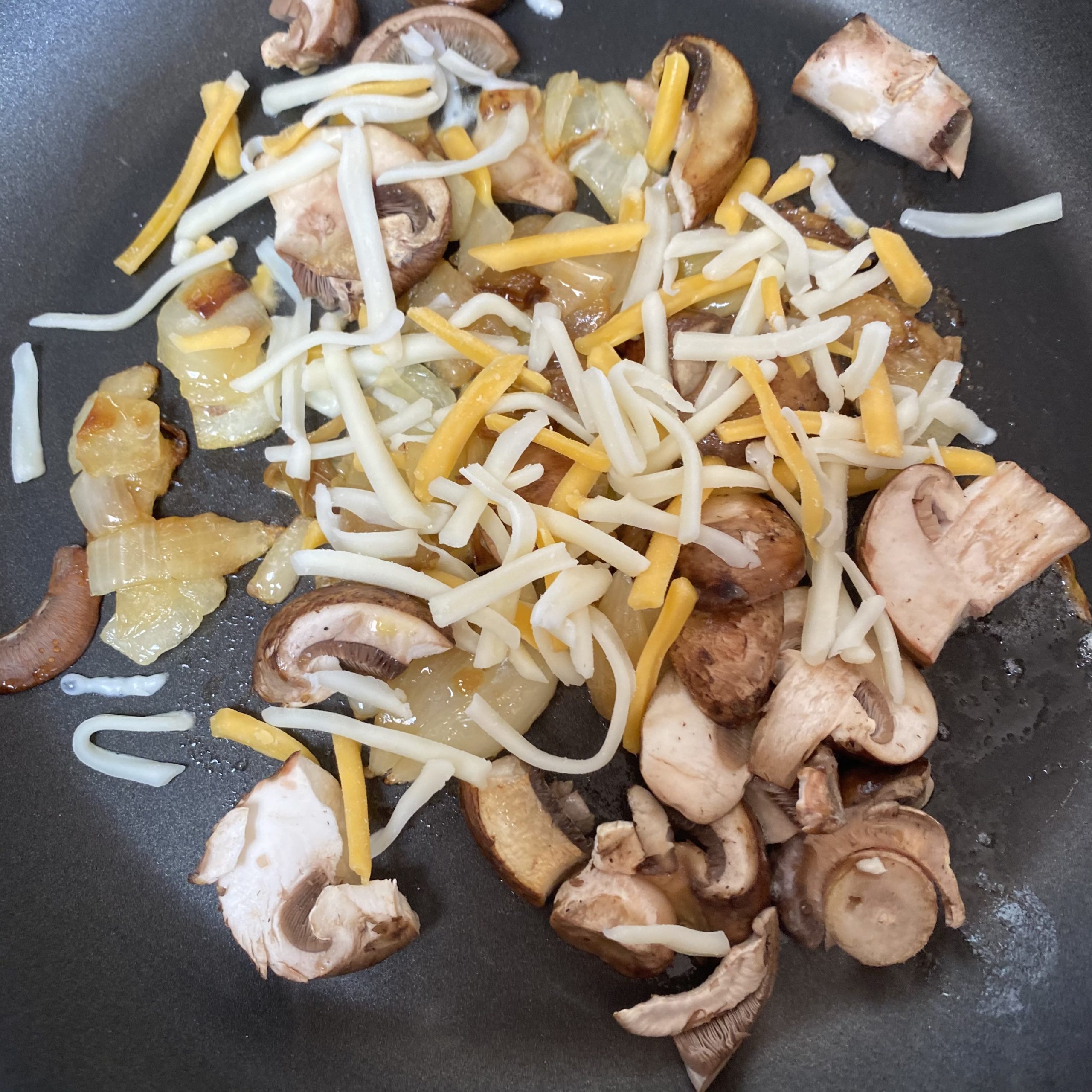 I like to sprinkle cheese in the pan on top of and around the leeks so that the cheese is not just gooey in one section of the omelette.
