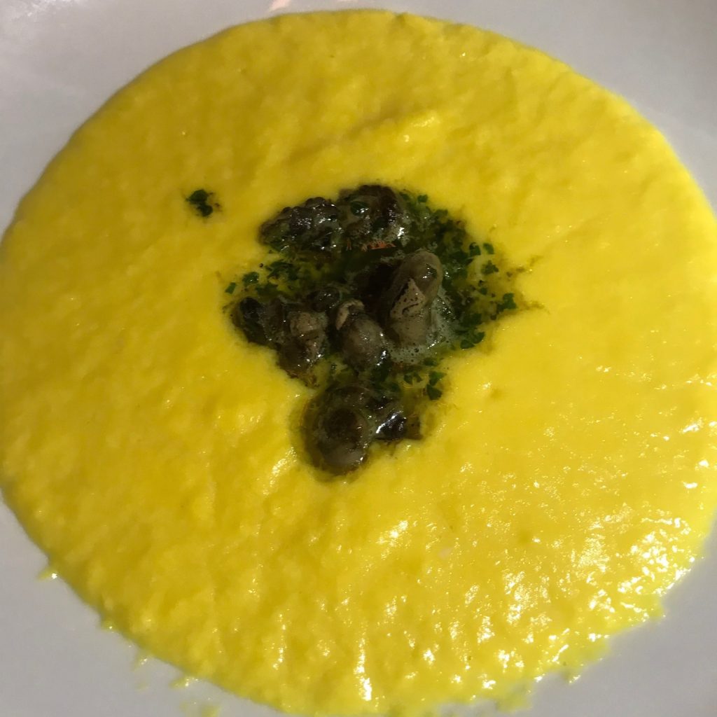 We started with the Brouillade comprised of soft scrambled eggs cooked in butter and truffle, topped with Peconic escargot.