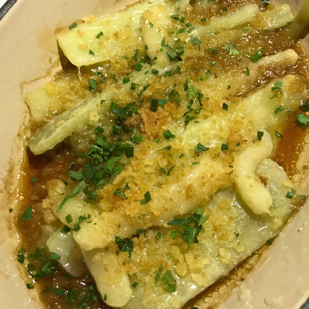 Courtny and I countered with Celtuce Gratin (thick stem celery lettuce) with marrow. It was tasteless and uninspired, although the sauce had great flavor ($9).