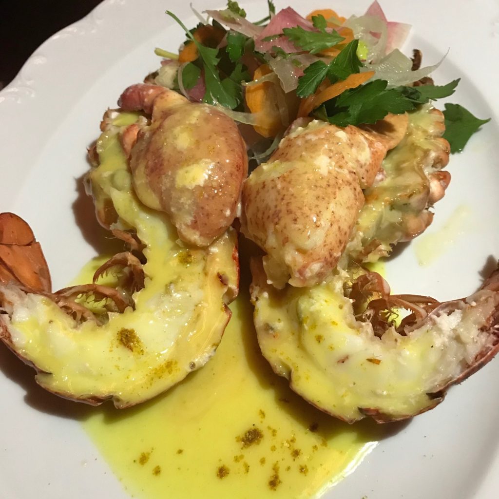 The Homard a la Broche (lobster) was amazing, tender, delicious, ample and the butter sauce divine ($48).