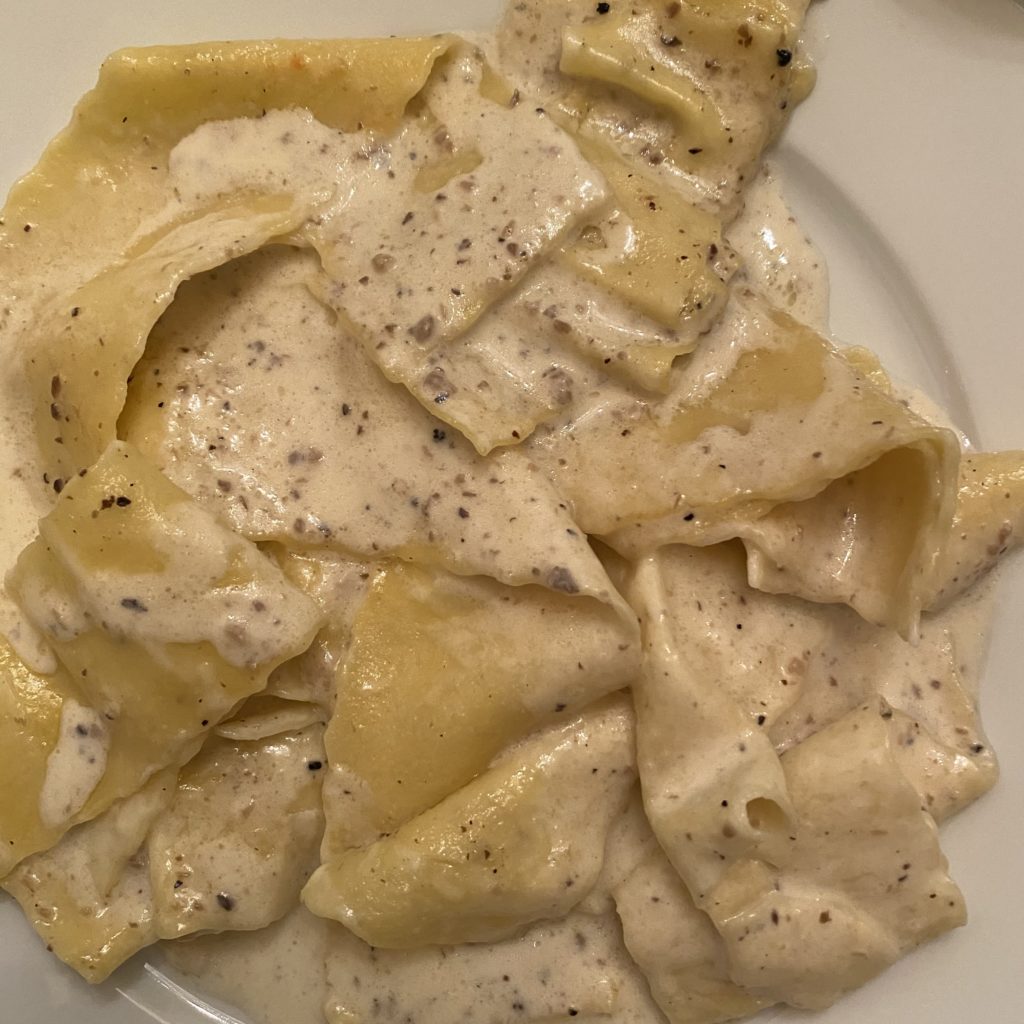 Our other main was Ricciarelle Tartufo, a homemade pappardelle in a white truffle sauce. The pappardelle was excellent, but again truffle sauce does not travel well ($30).