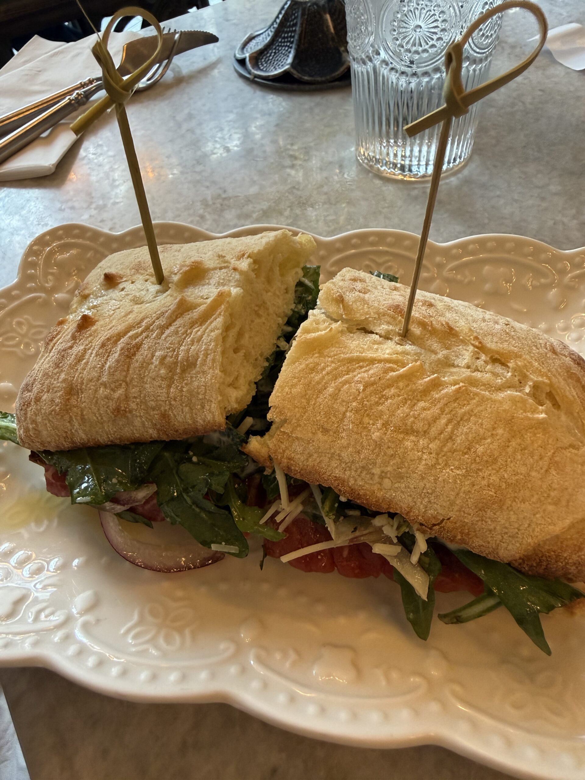 Birthday girl, Nanci, went with the Carpaccio sandwich prepared with raw tenderloin, homemade garlic sauce, arugula, red onions, capers, Parmesan cheese on toasted ciabatta. This is the chef’s favorite item on the menu ($19).