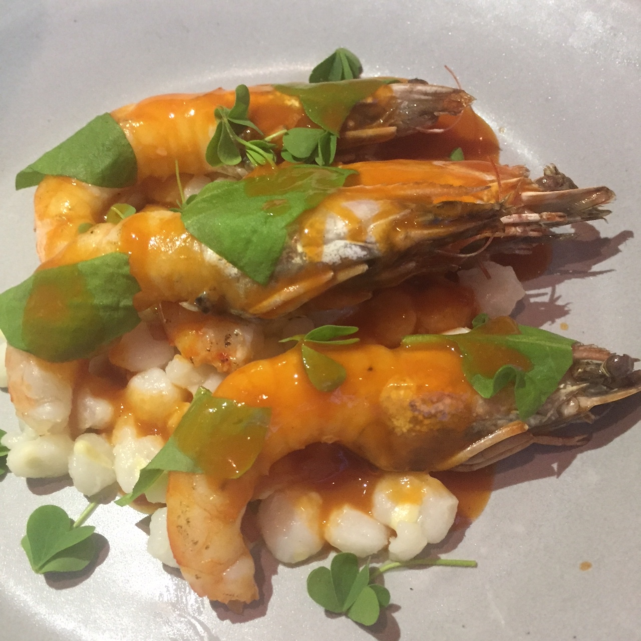 David ordered the Whole Shrimp with head’s on, hominy and Cortez sauce. The whole shrimp were flavorful, but the red sauce distracted from the dish ($25).