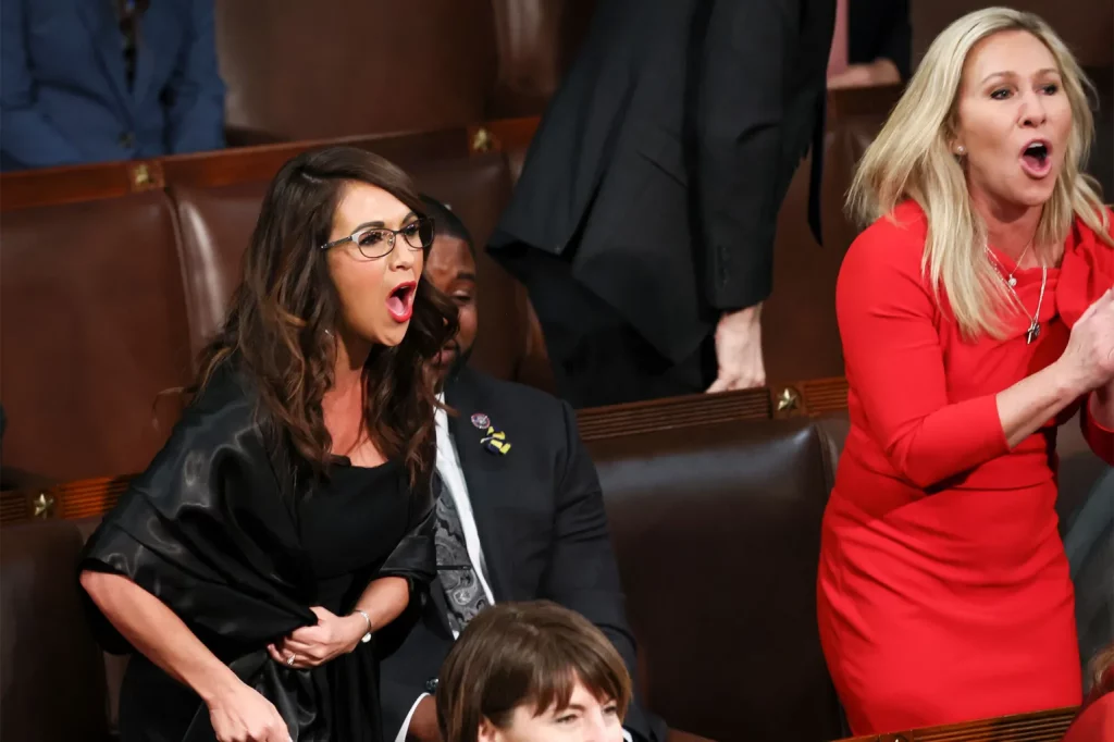 Not surprisingly, the hideous Marjorie Taylor Greene who heckled Biden from the audience wore a bright red dress I assume to pledge allegiance to Russia.