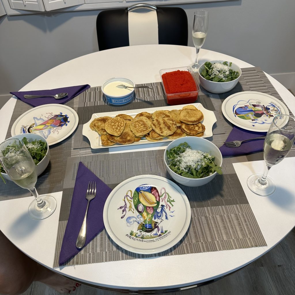 Last week I whipped up Queen E’s matzoh meal latkes which are the same as blinis.